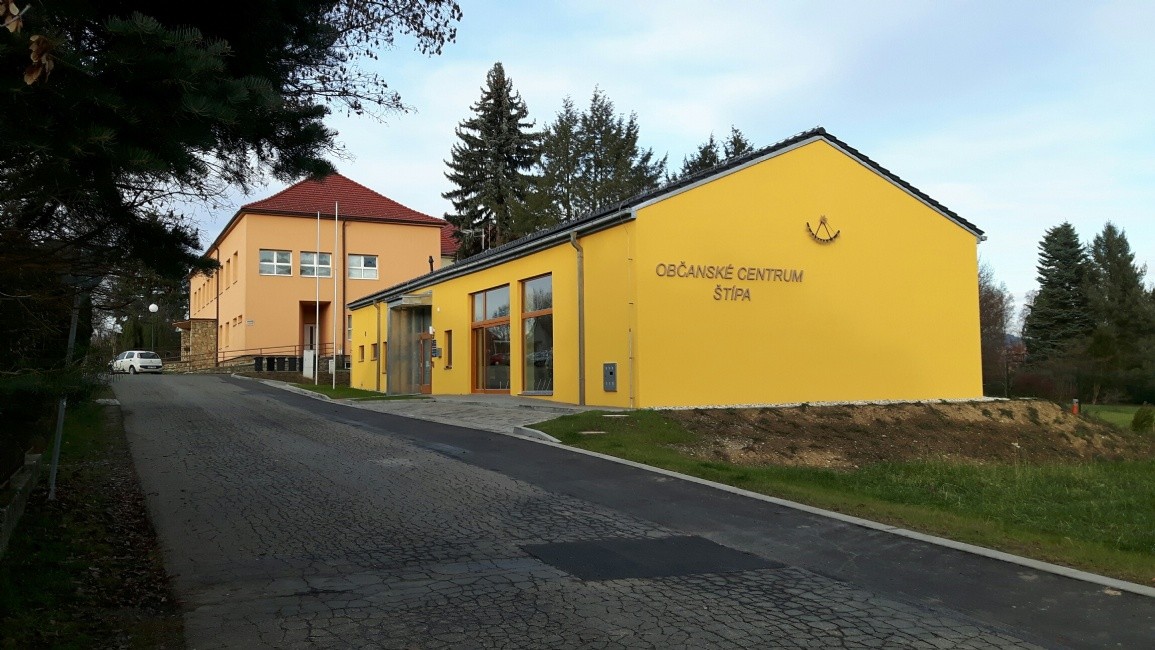 V roce 2016 byla dokončena víceúčelová budova, která má sloužit občanům Štípy a okolí. V objektu je kancelář místní části Štípa, pobočka krajské knihovny, zázemí pro cestáře a víceúčelová místnost s kuchyňkou pro cca 80 osob, která slouží především klubu seniorů. Využití společenské místnosti se předpokládá i k dalším účelům, např. k různým menším společenským a kulturním akcím. Sál je možné si pronajmout, ceník a potřebné informace najdete níže.