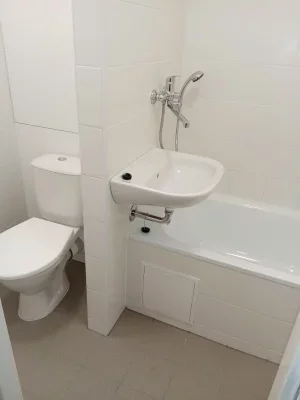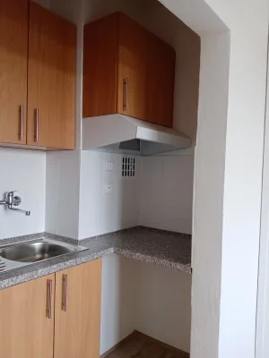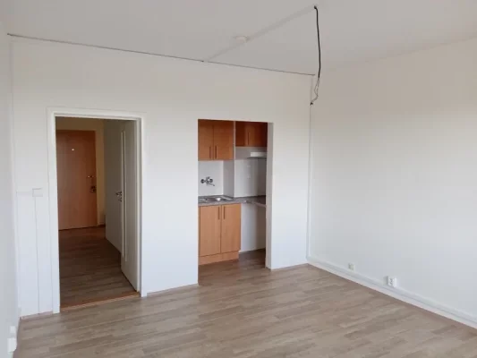 Byt má užitnou plochu 35 m2 - předsíň, koupelnu, místnost s kuchyňským koutem a balkon. K bytu dále náleží sklepní kóje v 3. podzemním suterénu.