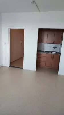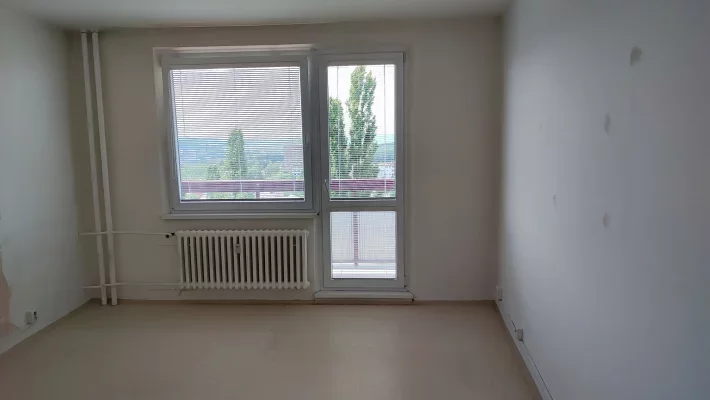 Byt má užitnou plochu 35 m2 - předsíň, koupelnu, místnost s kuchyňským koutem a balkon.