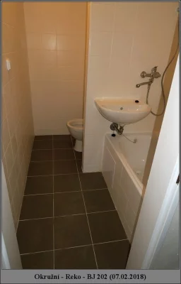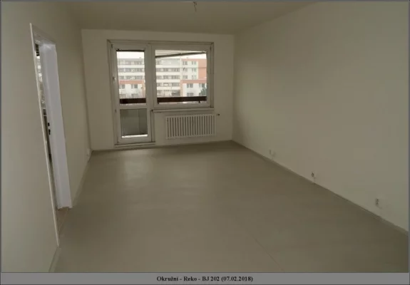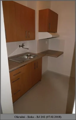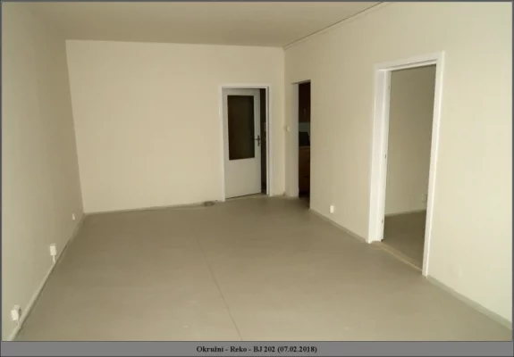 Byt má užitnou plochu 50 m2 - předsíň, koupelnu, místnost s kuchyňským koutem, menší místnost a balkon. K bytu dále náleží sklepní kóje v 1. podzemním suterénu.