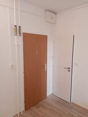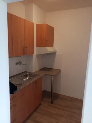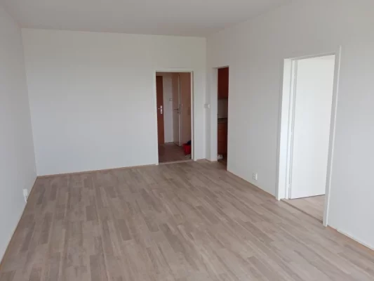 Byt má užitnou plochu 54 m2 - předsíň, koupelnu, místnost s kuchyňským koutem, menší místnost a balkon. K bytu dále náleží sklepní kóje v 3. podzemním suterénu.