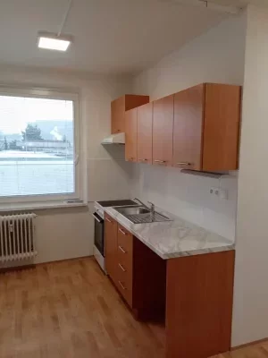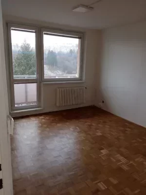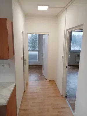 Dvoupokojový byt s kuchyňským koutem o užitné ploše 47 m2. Součástí bytu je velký pokoj s lodžií, menší pokoj s lodžií, chodba s kuchyňskýn koutem, prostorná komora, koupelna s vanou, umyvadlem, WC.