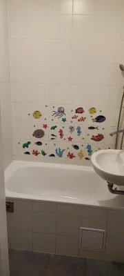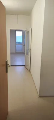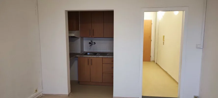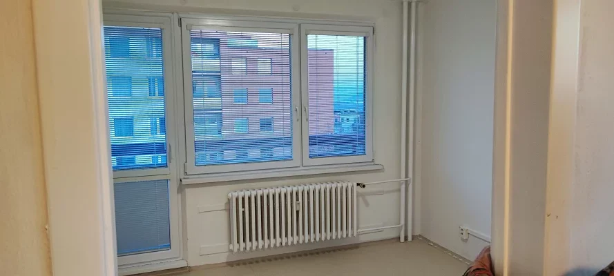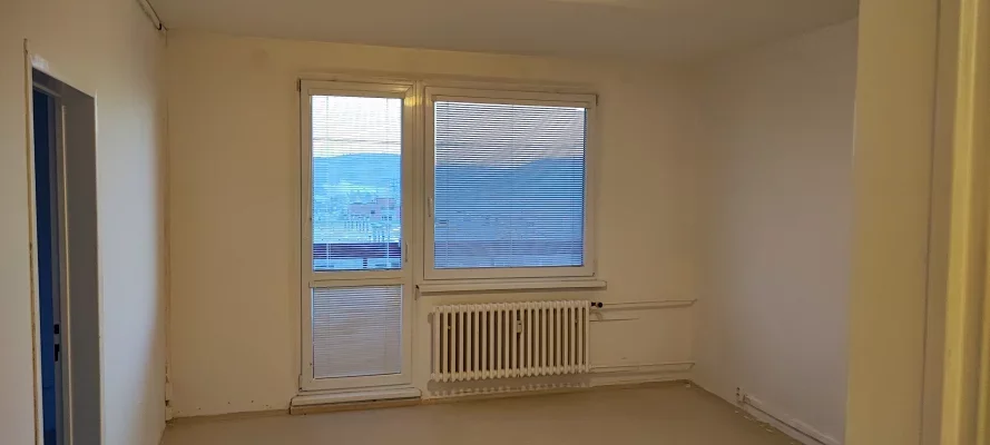 Byt má užitnou plochu 54 m2 - předsíň, koupelnu, místnost s kuchyňským koutem, menší místnost, dva balkony.