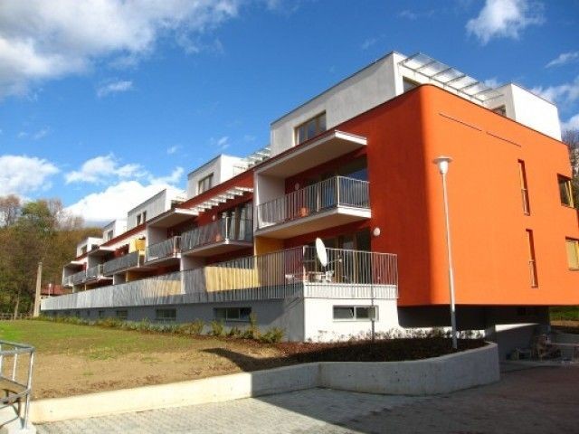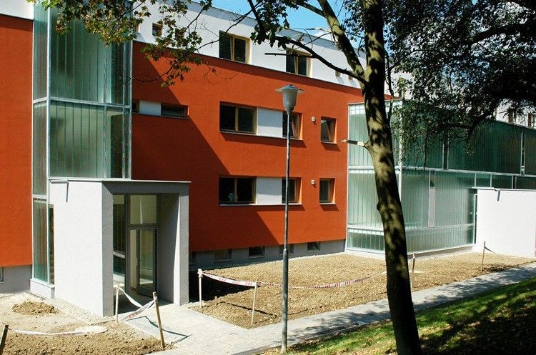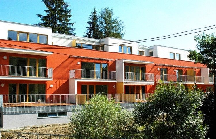 K lítosti autora bylo upuštěno od mezonetových bytů v posledním podlaží vytvářející zajímavější, spíše vertikální figury střešní dřevěné nástavby, stejně jako od důležitých jednoduchých řešení konstrukcí materiálů a detailů, které nyní dávají stavbě místy zcela jiný charakter.