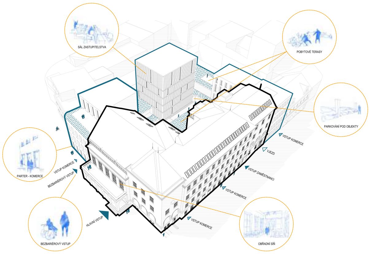 Naším přáním je, aby současný architektonický vstup do historické části města dobře sloužil svému účelu a stal se obdobným symbolem jako stavba F. L. Gahury. Obnova této stavby by neměla být samoúčelná. Naopak, cílem soutěže je rozvoj celého stavebního souboru radnice, respektive jeho rehabilitace pro potřeby dnešní doby. Hodnoty objektů č.p. 10 a především č.p. 12 by proto měly být nezpochybnitelným základem a pomyslným odrazovým můstkem pro ambici kvalitní architektury.