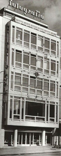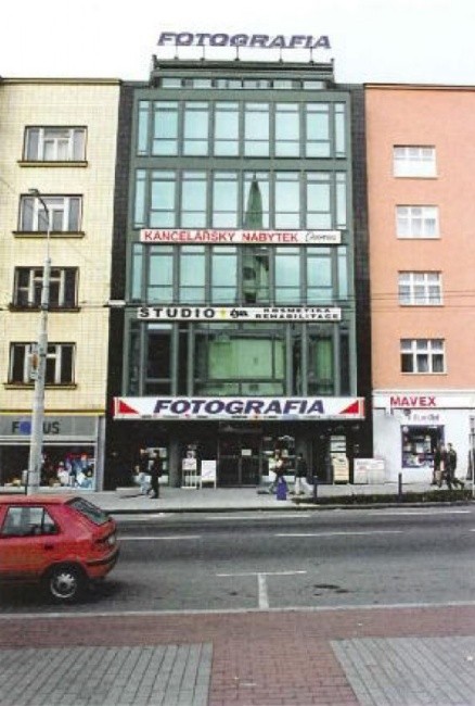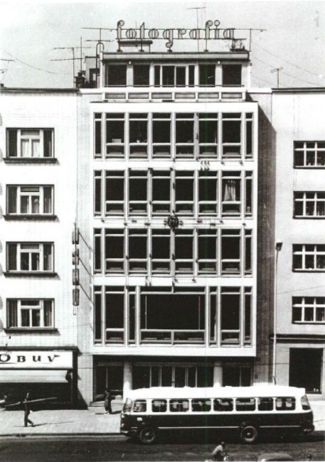 Jedno ze stěžejních děl Z. Plesníka a české poválečné éry vůbec. Kromě celkové koncepce s proměnlivou projekcí fotografií za transparentní fasádou si zaslouží pozornost především dnes již neexistující fasáda sama. Ve své době šlo o výjimečně náročný a nákladný design (leštěné hliníkové opláštění ocelových okenních profilů vsazených do subtilní železobetonové kostry). Fasádu opticky odlehčovalo její arkýřové (konzolové) pojetí, takže mohla být omylem považována za ranný příklad závěsové stěny. Tlumená barevnost dávala vyniknout přirozeným povrchům jednotlivých materiálů (keramický obklad kolem arkýře se svou barvou blížil sousednímu Trantírkovu domu). Křivka schodiště v interiéru představuje poslední pozůstatek někdejší noblesy domu.