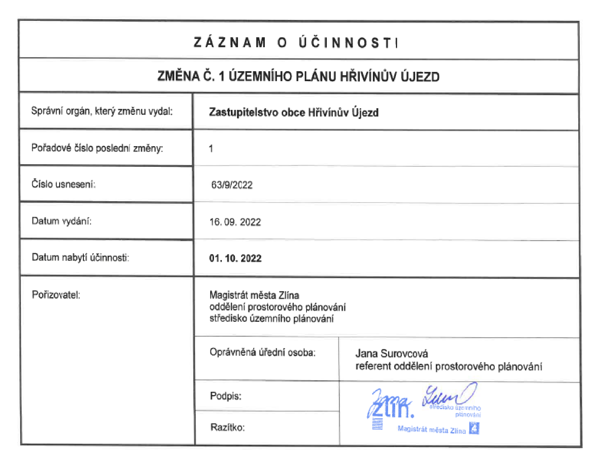 Dokumenty ke stažení ze složky ZMĚNA Č. 1 ÚZEMNÍHO PLÁNU HŘIVÍNŮV ÚJEZD