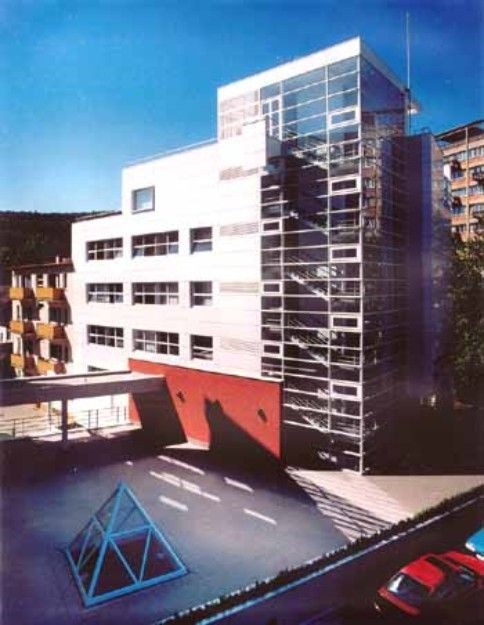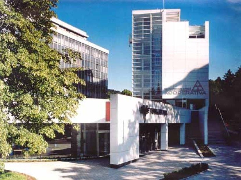 Komplex administrativně obchodního centra byl realizován na pozemku, který byl mimořádně složitý jak z hlediska prostorových , tak i provozních vazeb. Na hranici centra Zlína jsou v prostoru křižovatky Štefánikova - Osvoboditelů totiž situovány stavby, které reprezentují tři rozdílná časová období. Sedmipodlažní budova KOOPERATIVY tomuto prostoru dominuje. Objekt kaskádovitě navazuje na torzo ulice Osvoboditelů a směrem do křižovatky ji jednoznačně ukončuje. Nenásilný přechod k budově Centroprojektu tvoří plně prosklené schodiště s panoramatickým výtahem, umístěným v nejvyšší , severní části objektu. Zbývající části fasád jasně odrážejí vnitřní uspořádání budovy : nástupní 1. a 2. podlaží s prosklenými výkladcovými stěnami, 3., 4. a 5. podlaží charakterizují okna patřící k běžným kancelářím a reprezentativní 6. podlaží, jehož kanceláře jsou orientovány na přilehlé terasy. Pravidelný rastr fasád je ještě zvýrazněn použitím kazet z bílého hliníkového plechu.Objekt byl oceněn v soutěži stavba roku 1999.