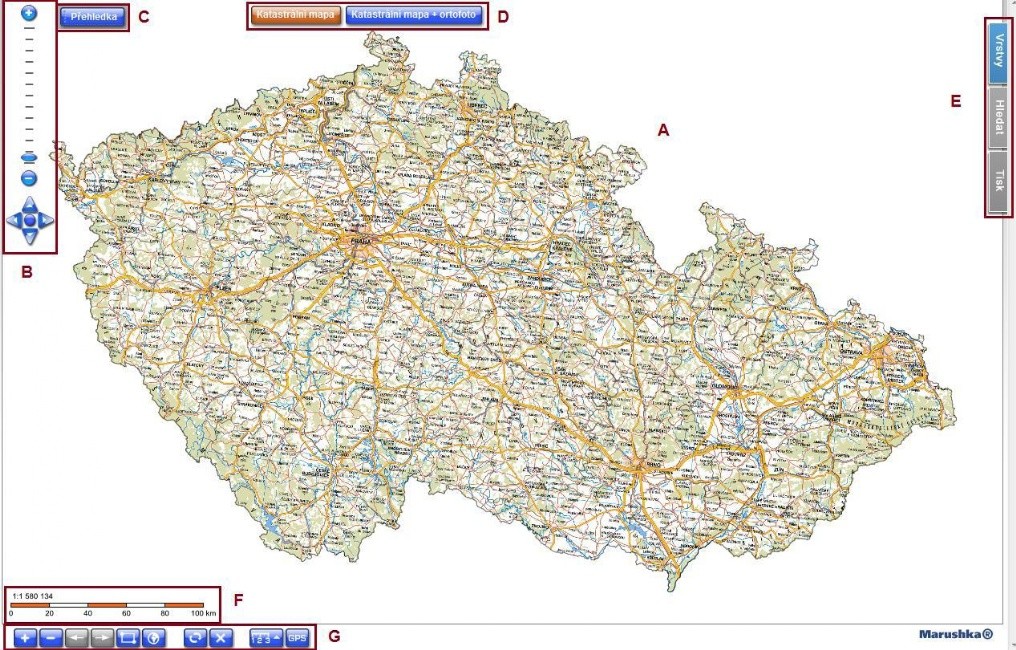 B – Grafické ovládání mapy (posun a změna měřítka)