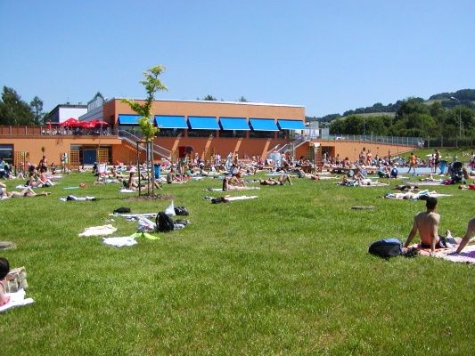 V těsné blízkosti našeho areálu Zelené se nachází městské koupaliště s tobogány, skluzavkami, vířivkou a travnatou plochou pro relexaci a opalování.