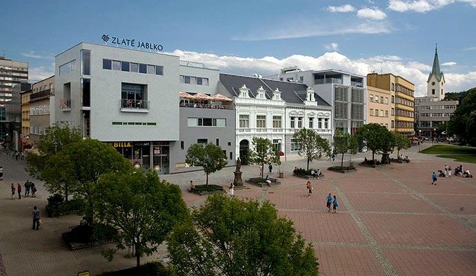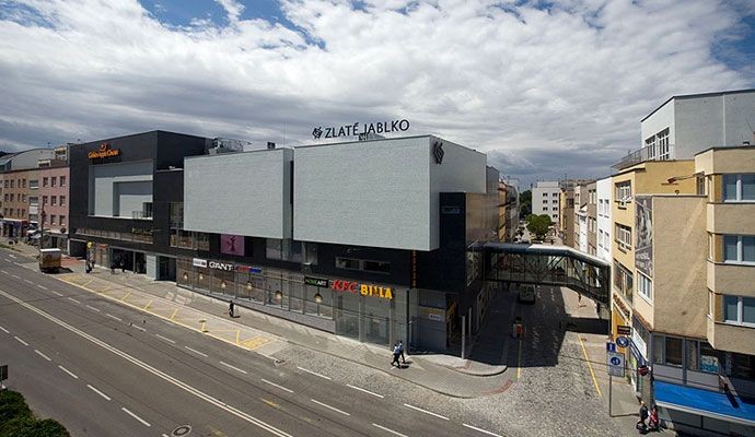 Zlaté Jablko nabízí na prodejní ploše 13 000 m2 největší nákupní galerii ve Zlínském kraji s více než 70 obchodními jednotkami na třech nadzemních a jednom podzemním podlaží. Součástí je také první multikino v kraji se šesti sály, supermarket BILLA, ale i čistírna oděvů, oprava obuvi, květinářství a pekárna.