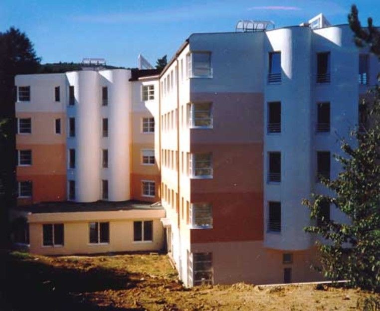 Dům resp. dvojdům je situován na ideálním místě , prakticky uprostřed města, zároveň ale stranou veškerého dění , na okraji lesa. O vysokém standardu 15 exkluzivních bytových jednotek svědčí skladby bytů: 3+1, 4+1, 5+1 a mezonetové byty ve dvou úrovních. Také společenské prostory v přízemí jsou velice nadstandardní: garážové stání, bazén, herna, posilovna, sušárna a sklepy. Samostatný byt má v přízemí stálý domovník. Také tvarově je tento pětipodlažní objekt velmi zajímavý. Charakteristické jsou masivní uskakující terasy, zaoblené arkýře,prosklené schodiště a výtahové šachty a v neposlední řadě i decentní, ale výrazná barevnost fasád.