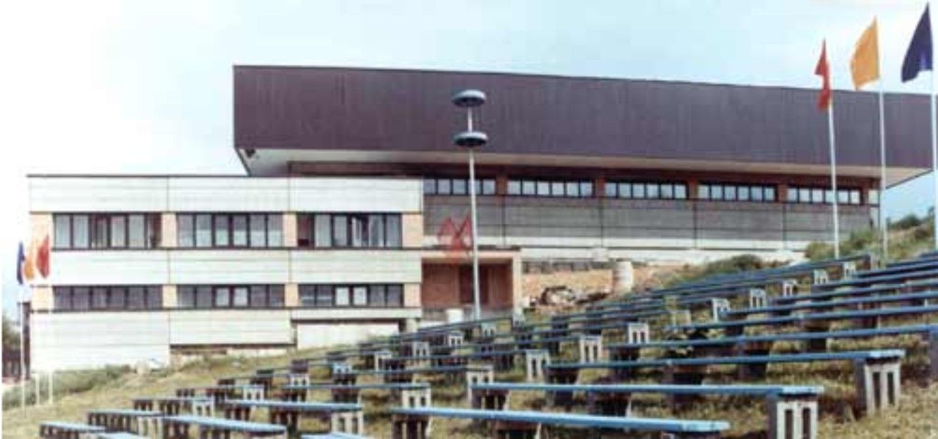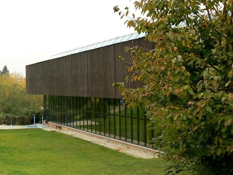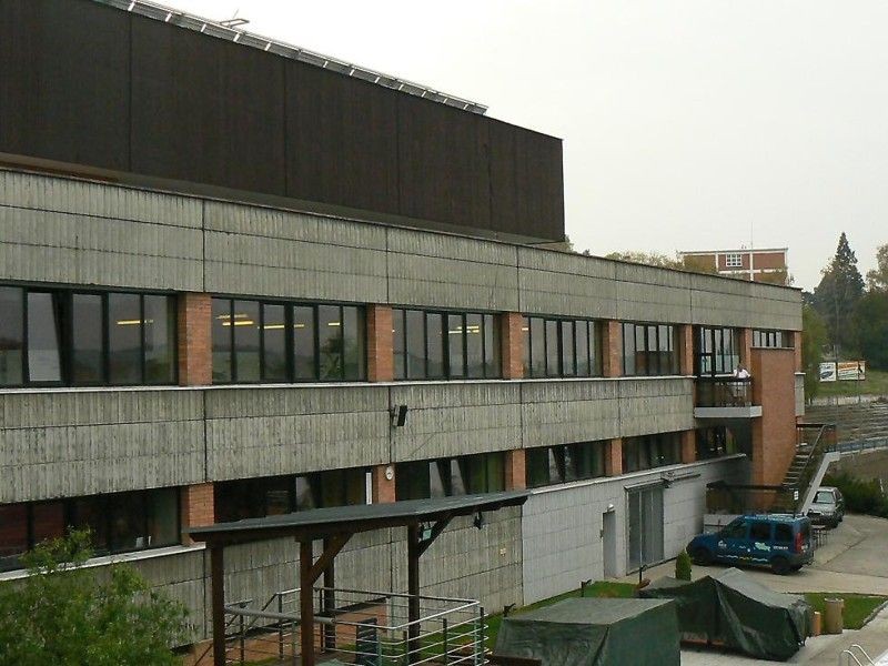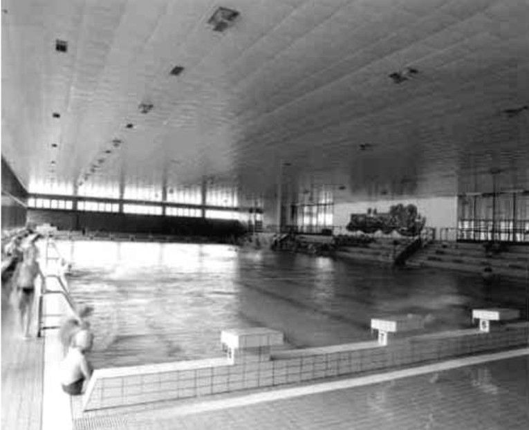 V roce 1950 byl ve Zlíně postaven 25 m dlouhý krytý bazén podle projektu arch. V. Karfíka. Už po dvaceti letech začaly vznikat úvahy o stavbě 50 m dlouhého bazénu. Ten byl realizován v roce 1985. Polohově navazuje na starý bazén, je sním propojen chodbou a mezi oběma krytými bazény je i jeden otevřený, venkovní. Vznikl tak ucelený plavecký areál ve výhodné poloze, navíc s vazbou na další sportovní zařízení (Stadion mládeže). Dispoziční řešení je velmi racionální. Jen bazénové hale by slušelo více prostoru po výšce. Také architektonické řešení je střízlivé s charakteristickou mohutnou předsazenou střechou a podnoží z pohledového betonu.