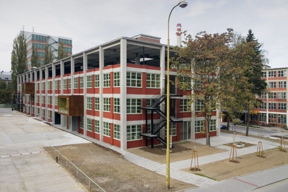Požadavkem zadání bylo přetvořit typický Baťovský výrobní skeletový objekt (3x13 polí 6,15x6,60 m, 4np.) na kancelářskou budovu s maximálním množstvím flexibilních kancelářských ploch a odpovídajícím zázemím ( kavárna, obchodní plochy atd.).