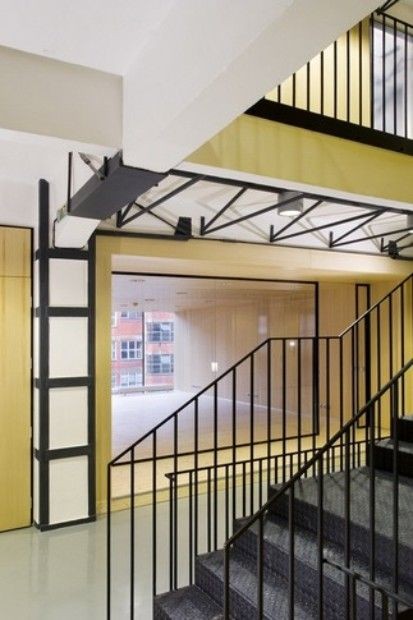 Prostorová koncepce budovy se odvíjí z centrálního atriového prostoru (střední trakt), kolem něhož jsou uspořádány kancelářské plochy s přímím denním světlem. Střední komunikační prostor je propojen vertikálně skrz otvory ve stropních deskách přes všechna patra, což umožňuje dostat do nitra budovy horní světlo. Na tuto formu prosvětlení navazuje ve čtyřech místech ještě světlo boční, skrz prosklené stěny tubusů s jednacími místnostmi. Tyto tubusy prochází skrz původní plášť budovy až do exteriéru (plech Corten) kde dávají jasně najevo novou formu vnitřního uspořádání. Součástí budovy je také vnější výtahová věž z 60.let 20. století. Její krásná vertikální proporce je zakončena bývalou strojovnou výtahu, dnes vyhlídkou na celý areál.