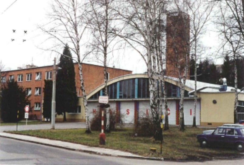 Původní zbrojnice se nacházela v centru města - musela být r. 1958 vyklizena z důvodu výstavby nového městského divadla, jehož provozní budova se stala součástí.