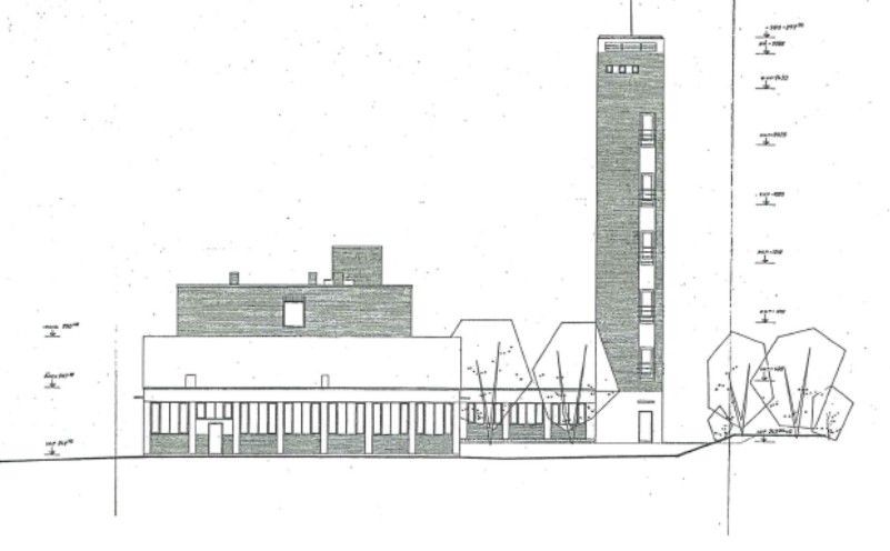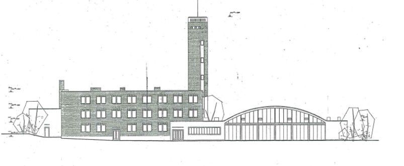 Později byla budova nadstavena o jedno patro s obloukovou konstrukcí střechy.