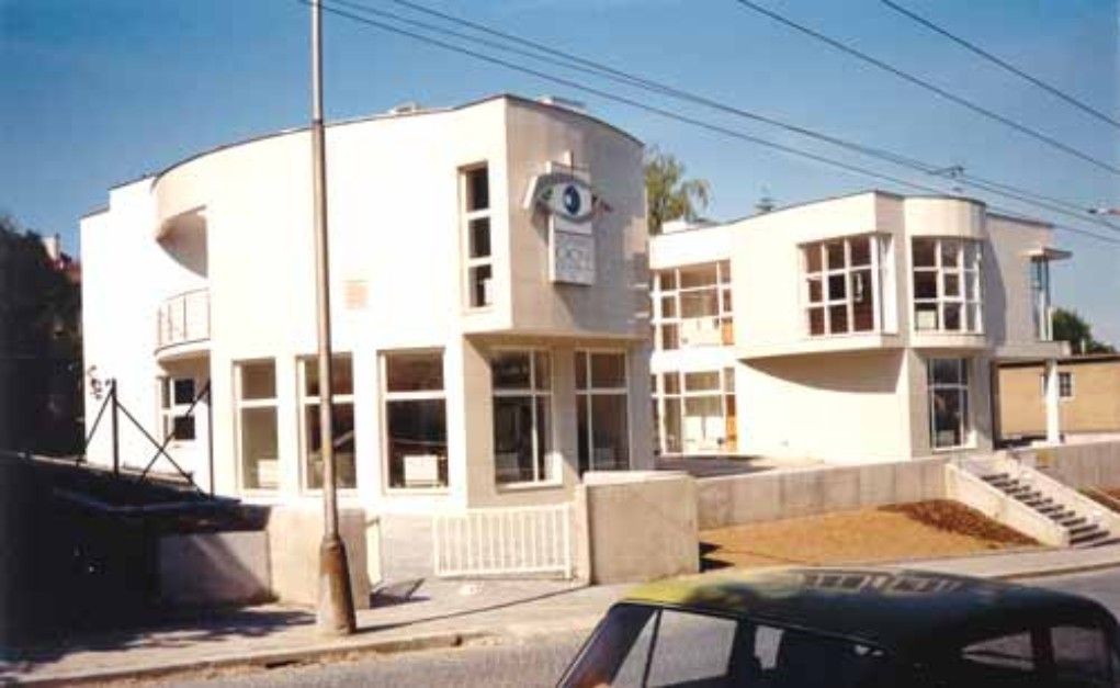 Oční centrum doplnilo volný pozemek ve stávající zástavbě městské části Zlín - Lazy. Jeho hmotové členění navazuje na vilovou zástavbu ulice Slovenské. Vytváří architektonicky bohatý celek, vycházející z principů funkcionalistické architektury s uplatněním soudobých stavebních materiálů (hliník, sklo, leštěná keramika). Objekt ve tvaru písmene "U" vytváří polouzavřený nástupní prostor, jasně vymezující orientaci návštěvníka a zároveň srovnává svažitý terén, který je v západní části ukončen opěrnou zdí, v části východní využit pro parkování. Budova je v celém půdorysu dvoupodlažní, bohatě členěná, v celkovém výrazu působí sevřeným dojmem. Za pozornost stojí i interiér stavby.