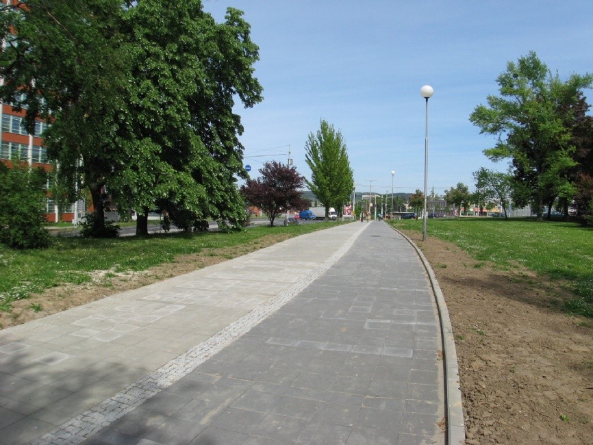 Nově byly propojeny další části centra města vybudováním stezky pro pěší a cyklisty v trase stávajícího chodníku v úseku podél třídy Tomáše Bati