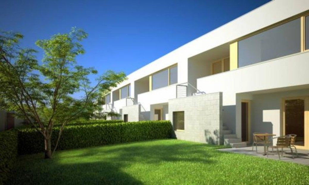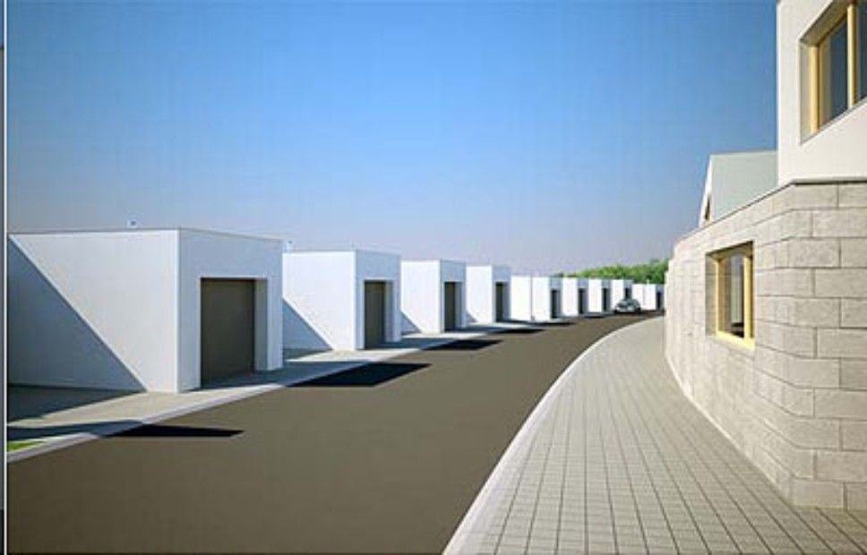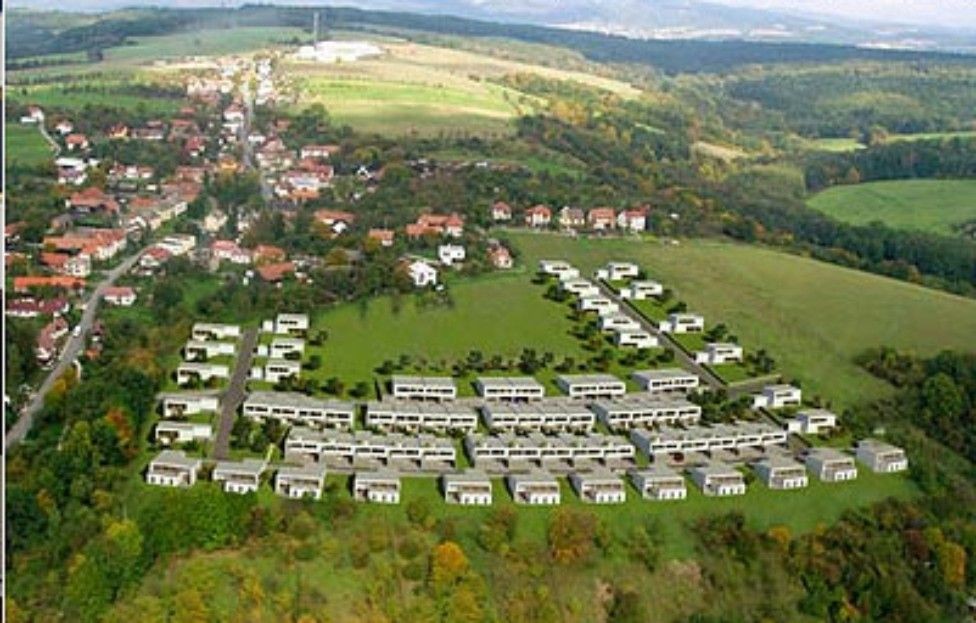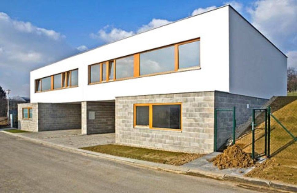 Z celkového záměru byly postaveny zatím jen jeden dvojdům typu A a 1 sekce řadových domů B, C.