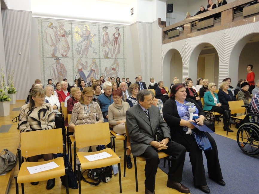 To se konalo ve čtvrtek 20. 10 2016. V rámci udržitelnosti projektu „Můj domov – region Bílé Karpaty se ho zúčastnilo rovněž 53 seniorů z partnerského města Trenčína. Přítomné hosty přivítal ředitel divadla, p. Petr Michálek, a náměstkyně primátora pro oblast sociální, Bc. Kateřina Francová, která ocenila pět aktivních zlínských seniorů. Byli jimi: pan Josef Kopečný ze Zlínského klubu seniorů (ZKS) Velíková, paní Božena Strnadlová a paní Marie Hrbáčková ze ZKS Kvítková, paní Milada Šimková ze sekce Učitelů a pracovníků ve školství tohoto klubu a Ing. Robert Křižák, jeden z předních organizátorů turistiky ve Zlíně. Senioři ze ZKS Podhoří pak představitelům města a úřadu poděkovali za dobrou spolupráci v uplynulém roce.