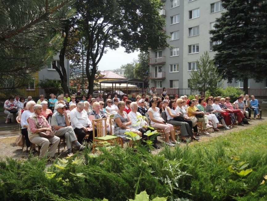 Dne 9. 6. 2016 se v rámci udržitelnosti projektu „Můj domov – region Bílé Karpaty" uskutečnil zájezd 52 zlínských seniorů - a jejich dvoučlenného doprovodu z Odboru sociálních věcí Magistrátu města Zlína - za přáteli do Trenčína. Partneři pro nás připravili prohlídku zrekonstruovaného hotelu Elizabeth (dříve hotel Tatra), po které následovala komentovaná prohlídka města, včetně vyhlídky z městské věže. Po krátkém rozchodu jsme se vydali do Centra seniorov, kde byl připraven program. Ten zahájily básničkami děti z mateřské školy. S připraveným pásmem písniček vystoupili manželé Jana a František Gazdošovi a zpěváci a zpěvačky ze Zlínského klubu seniorů na Kvítkové. Následoval je trenčínský seniorský soubor Sihotár, Po programu bylo připraveno malé občerstvení, a i při něm jsme si společně rádi zazpívali lidové písničky, které si ještě pamatujeme z dob společného státu. Za dešťových kapek jsme se se slovenskými seniory neradi rozloučili. Těšíme se na ně v říjnu, kdy se s námi zúčastní divadelního představení Malované na skle v Městském divadle Zlín.