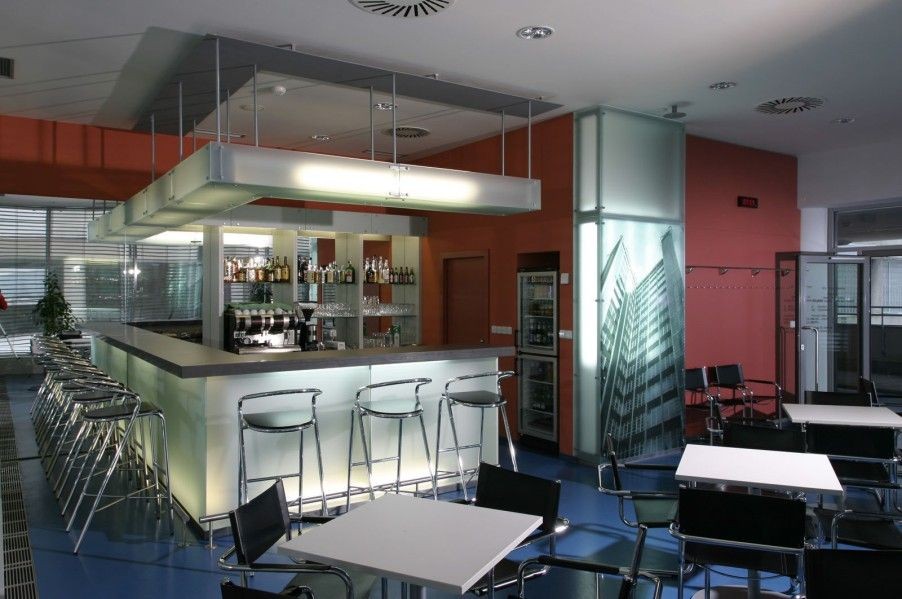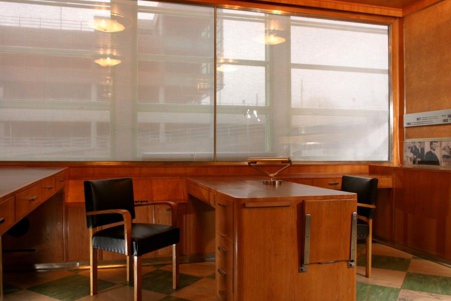 Skutečnou technickou lahůdkou je výtah-kancelář šéfa firmy o rozměrech 6x6 metrů, klimatizovaná, s umývadlem.