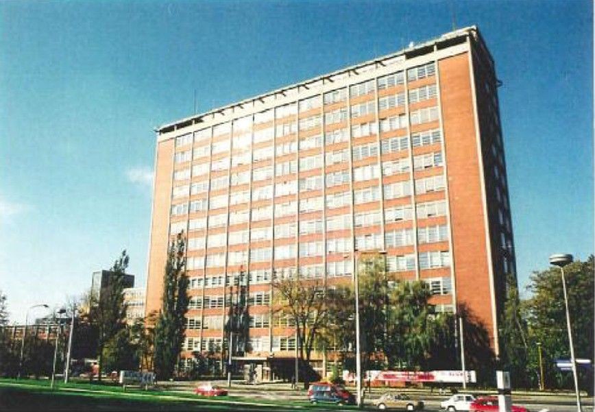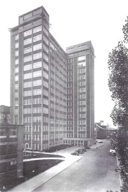 Z dispozičního hlediska se jedná o třítrakt, koncipovaný na stejné modulové síti (6,15x6,15 m) jako objekty výrobní. Celé podlaží o rozměrech 80x20 metrů je velkoprostorovou kanceláří většinou bez příček, kde pracuje asi 200 lidí. Pracovní plocha zůstala čistá, neboť jak vertikální komunikace (schodiště s výtahy), tak hygienická zařízení a klimatizační komory byly vyčleněny mimo tento prostor. Nosná konstrukce objektu je železobetonová, obvodový plášť tvoří ocelová dvojitá okna a cihelná vyzdívka se Slavíkovými obkladačkami.