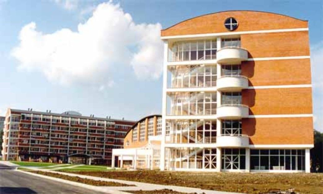 Celý nový komplex v Bartošově čtvrti se skládá ze dvou objektů školy, penziónu,jehož některé části jsou umístěny v rekonstruované bývalé mateřské škole a mezičlánek vytváří objekt výměníkové stanice tepla. Lokalizace Střední zdravotnické školy na Bartošovu čtvrť bylo velmi šťastné řešení. Na dohled je Baťova nemocnice,se kterou škola úzce spolupracuje. Teoretická výuka je tak těsně spjata s praxí a sociálním zázemím.Také vazba na penzión pro starší občany je oboustranně výhodná. Konstrukci tvoří betonové sloupy, obvodový plášť je sendvič tvořený cihelnými tvárnicemi a lícovkami, použitými i na penzionu. Doplnění bílou barvou štítů, průvlaků, půlkruhových balkónů, mezilodžiových stěn, rámů oken a dveří, vstupního zastřešení prostoru, kovových doplňkových konstrukcí,to vše zasazeno do zeleně. Jako bychom popisovali architekturu Zlína třicátých let. Časový posun je však znát především množstvím tvarových nápadů.