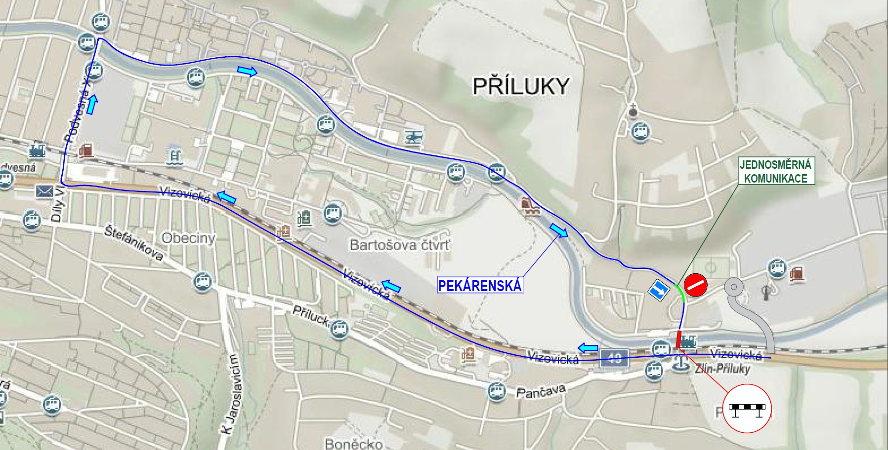 - Částečné zjednosměrnění Pekárenská - od ul. Cecilka ve směru ke Krajské nemocnici Tomáše Bati (KNTB) bude zákaz vjezdu. Od křižovatky ul. Pekárenská/Dolní dědina/Peroutkovo nábřeží po ul. Cecilka bude jednosměrný provoz. Toto omezení je dočasné pro odlehčení dopravy kolem KNTB. Příjezd k restauracím Restaurace Přístav a Louis Asian Restaurace Sushi Bar bude možný jak od ul. Pekárenská, tak z ul. Cecilka a z Průmyslové zóny.