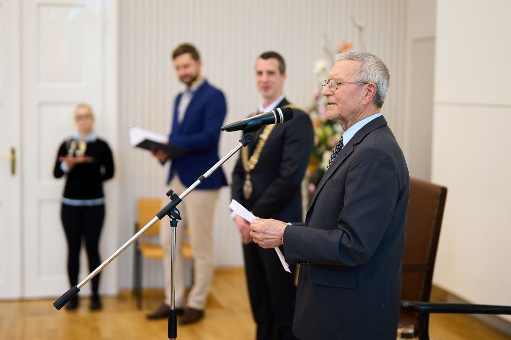 „Jsem rád, že letošní cenu získal právě Alois Láznička, typický Zlíňák, jenž si prošel továrnou ZPS a výrobou obuvi, kterou rozvíjel po celém světě a nesl tak dobré jméno zlínských škol a samotného města. K tomu ještě navíc zvládal propagovat orientační běh a starat se o děti a všechny tak motivovat ke zdravému životního stylu,“ uvedl primátor Jiří Korec.
