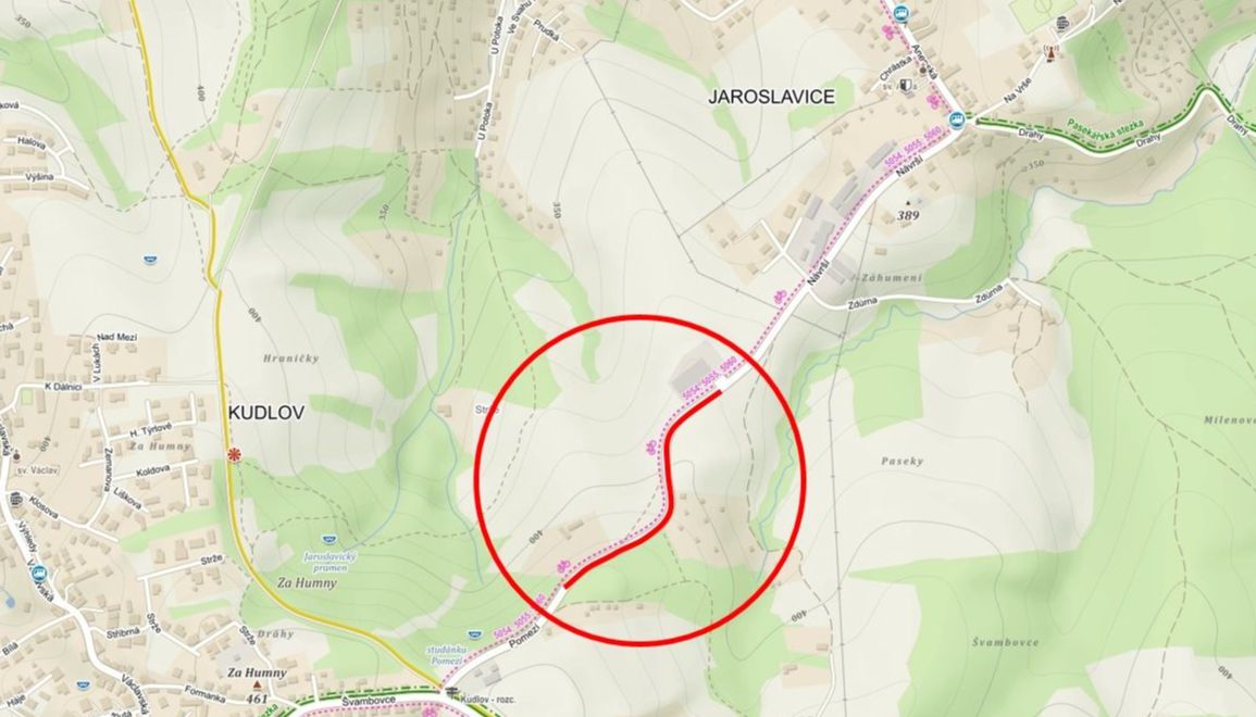Silnice mezi Jaroslavicemi a Kudlovem je zúžena v celkové délce cca 400 m z důvodu opravy vedení nízkého napětí. V den úplné uzavírky dojde ke kácení dřevin a stavby sloupu veřejného osvětlení. Práce jsou naplánovány po dobu jednoho dne. Stavebník upozorňuje, že v uzavřeném úseku bude stát mechanizace stavby (plošina, jeřáb, auto).