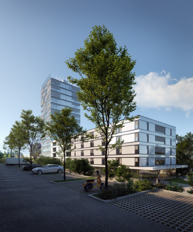 Dvojice propojených objektů, která Prospect tvoří, vyroste na místě, kde dnes stojí už nevyužívaná budova banky. Ta vznikla v období kolem sametové revoluce bez respektu k původní baťovské koncepci. Prospect vytvořený renomovaným architektem Jurajem Sonlajtnerem, který se dříve podílel na revitalizaci továrních budov 14 a 15 na Baťův institut, se k myšlence architektonického uzavření náměstí Práce naopak vrací. Navazuje tak na úvahy jednoho z nejvýznamnějších architektů baťovské éry Vladimíra Karfíka.