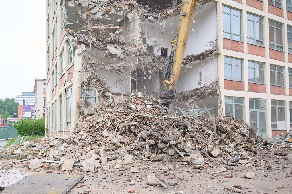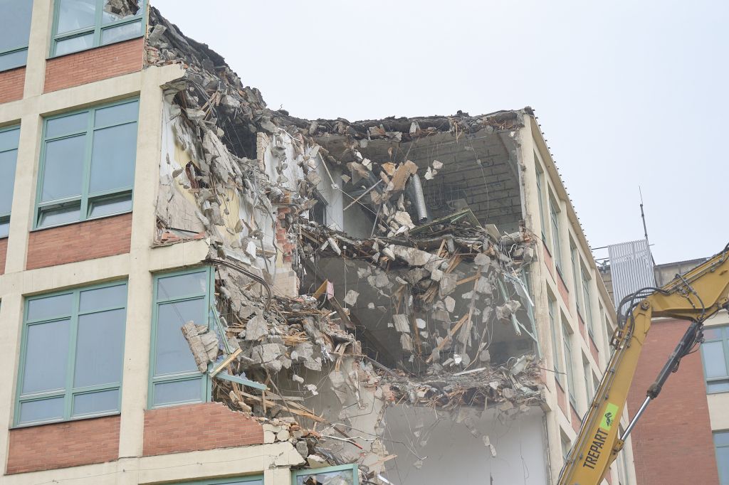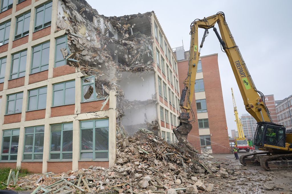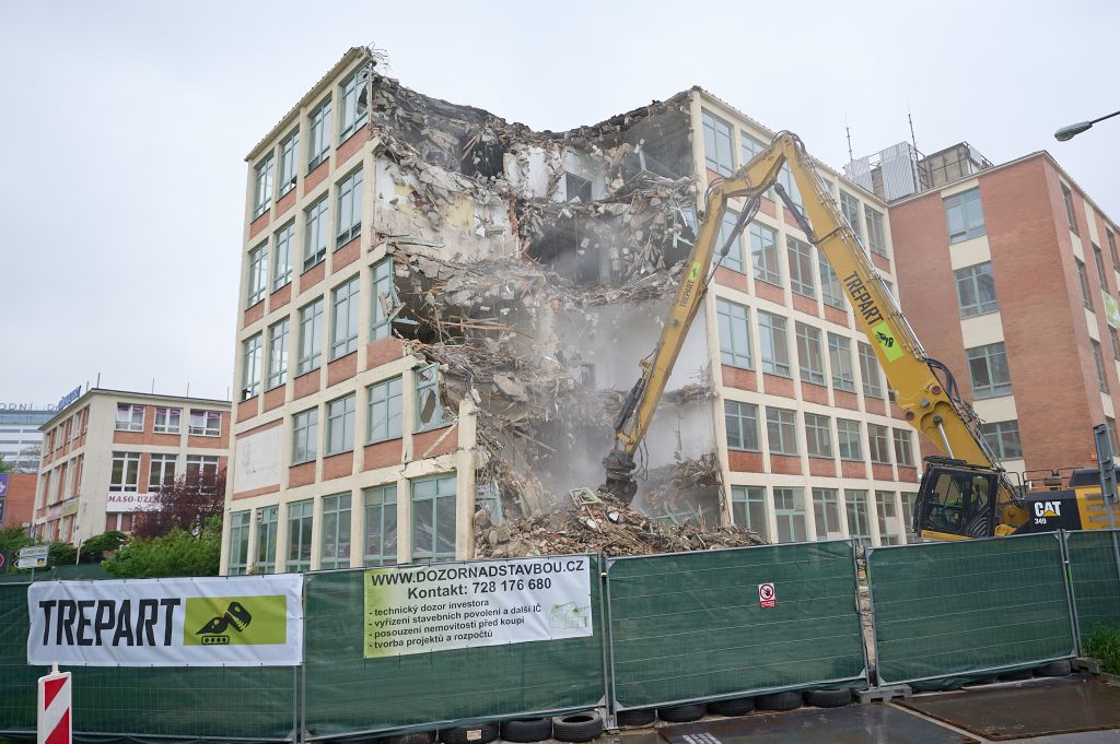 Fakulta postavená v roce 1932 se postupně promění ve zhruba dvacet tisíc tun suti. Vybouraný materiál se bude postupně odvážet na dotřídění, recyklaci a na skládku.