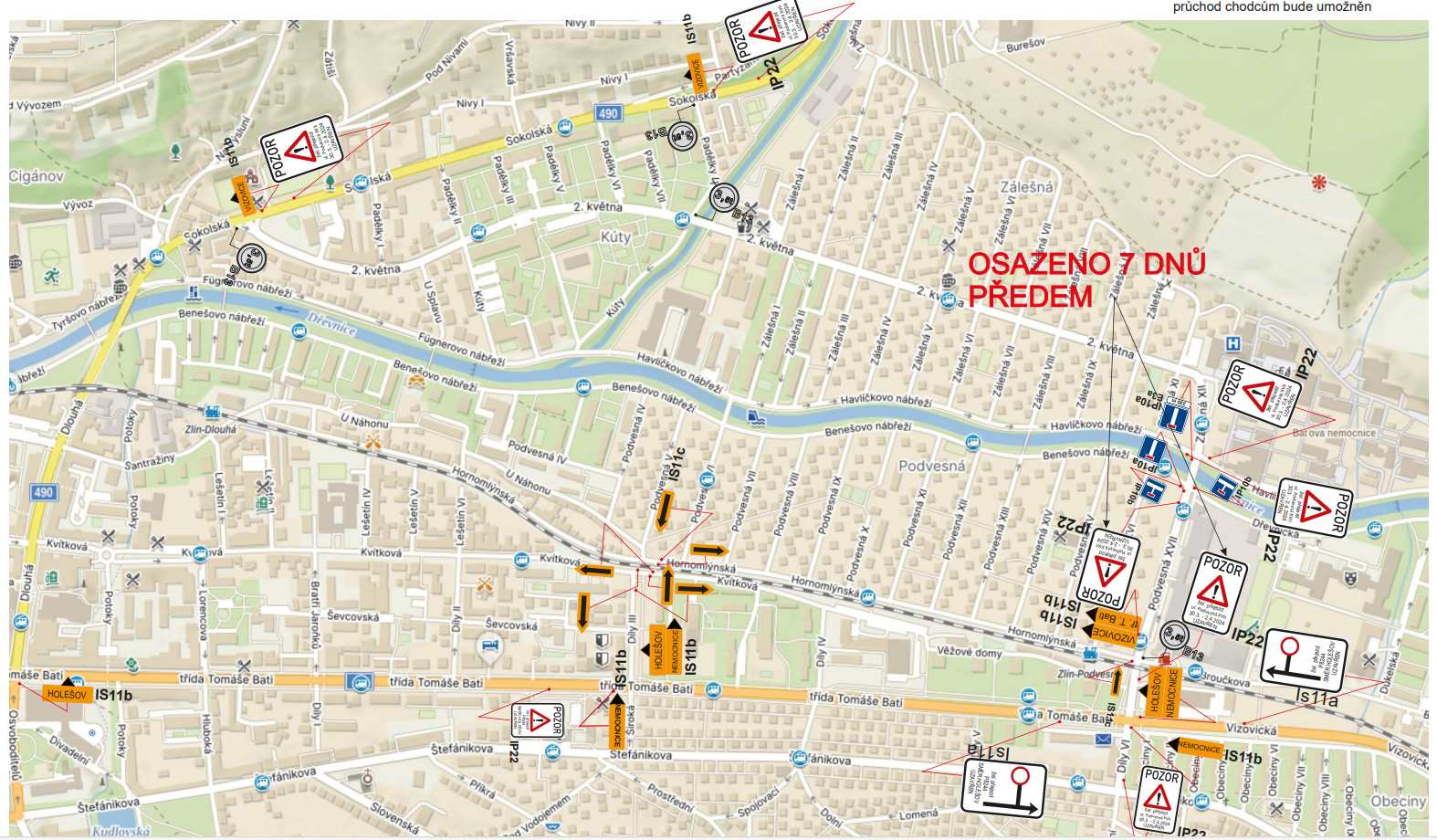 Přes přejezd jezdí trolejbusové linky č. 8 a 9. V čase uzavírky budou obě linky zkráceny a budou jezdit z Jižních Svahů s označením 8X a 9X pouze do centra Zlína. Ze zastávky Školní projedou trolejbusy kolem kostela a napojí se na svou trasu na zastávce Náměstí Míru, aby se vracely zpět na sídliště.