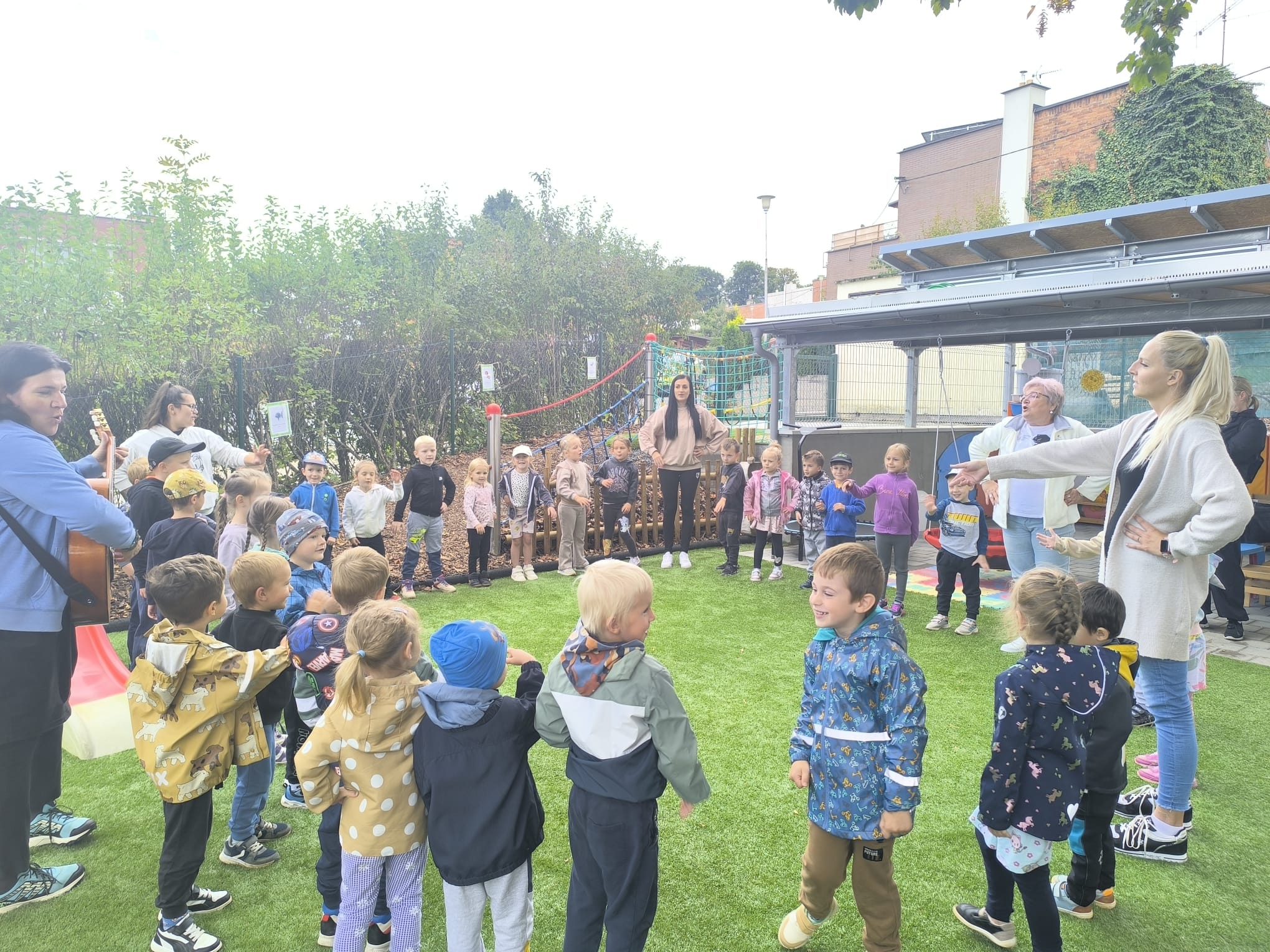 Tří měsíce trvající rekonstrukce proměnila původní svahovitý terén v atraktivní zónu umožňující vyžití až pro 70 dětí. Nová herní zahrada se nachází naproti školce přes boční ulici, je zcela oplocená a obklopená nově vysazenou zelení. Terén byl rozčleněn do dvou úrovní – horní část slouží především ke sportovním aktivitám, k hraní fotbalu a jiným míčovým hrám a je opatřen umělým trávníkem vhodným pro dětská hřiště. Spodní část nabízí zapuštěné pískoviště, dále menší pískoviště s prolézačkou a také prostor se skluzavkou a houpadly.