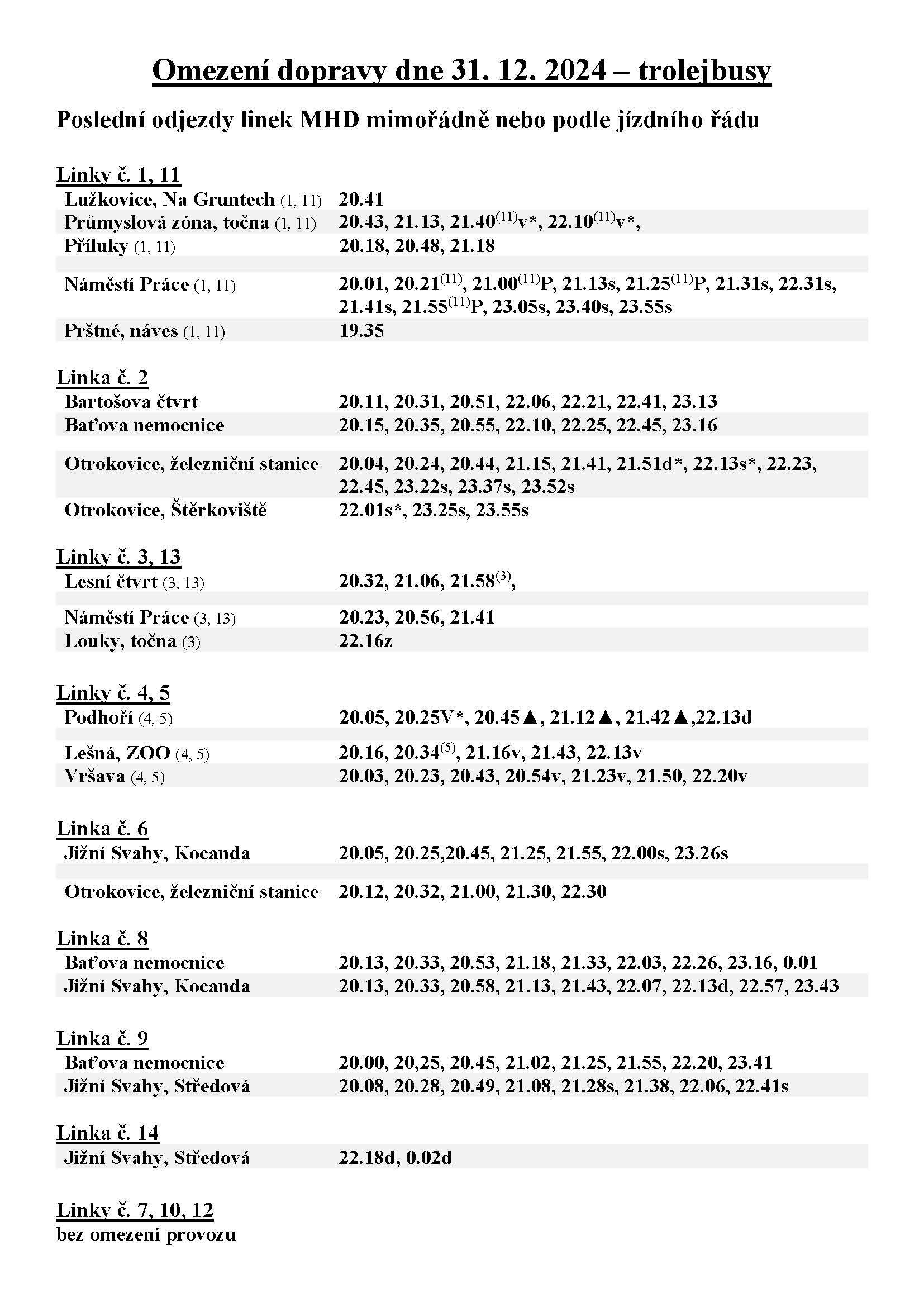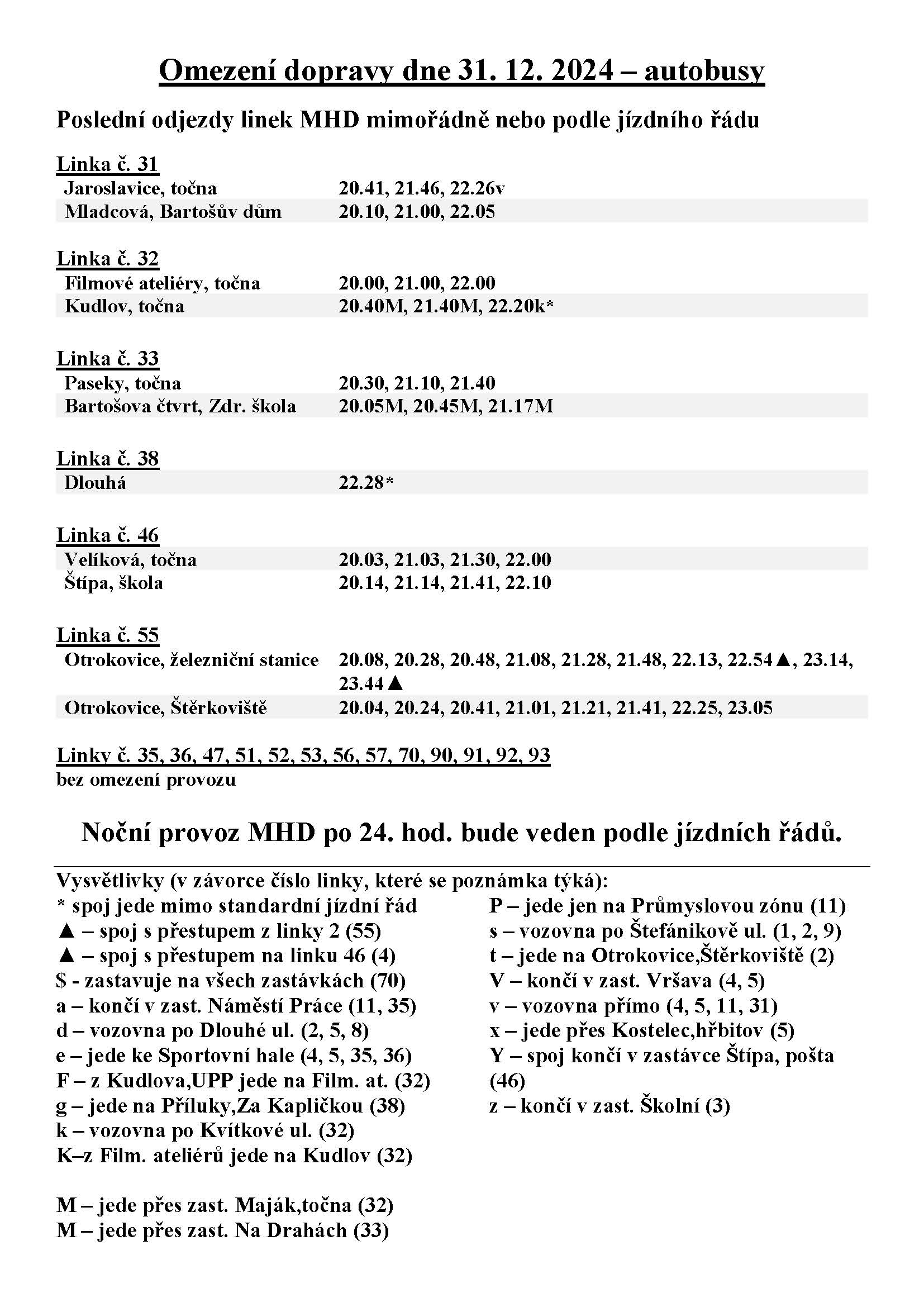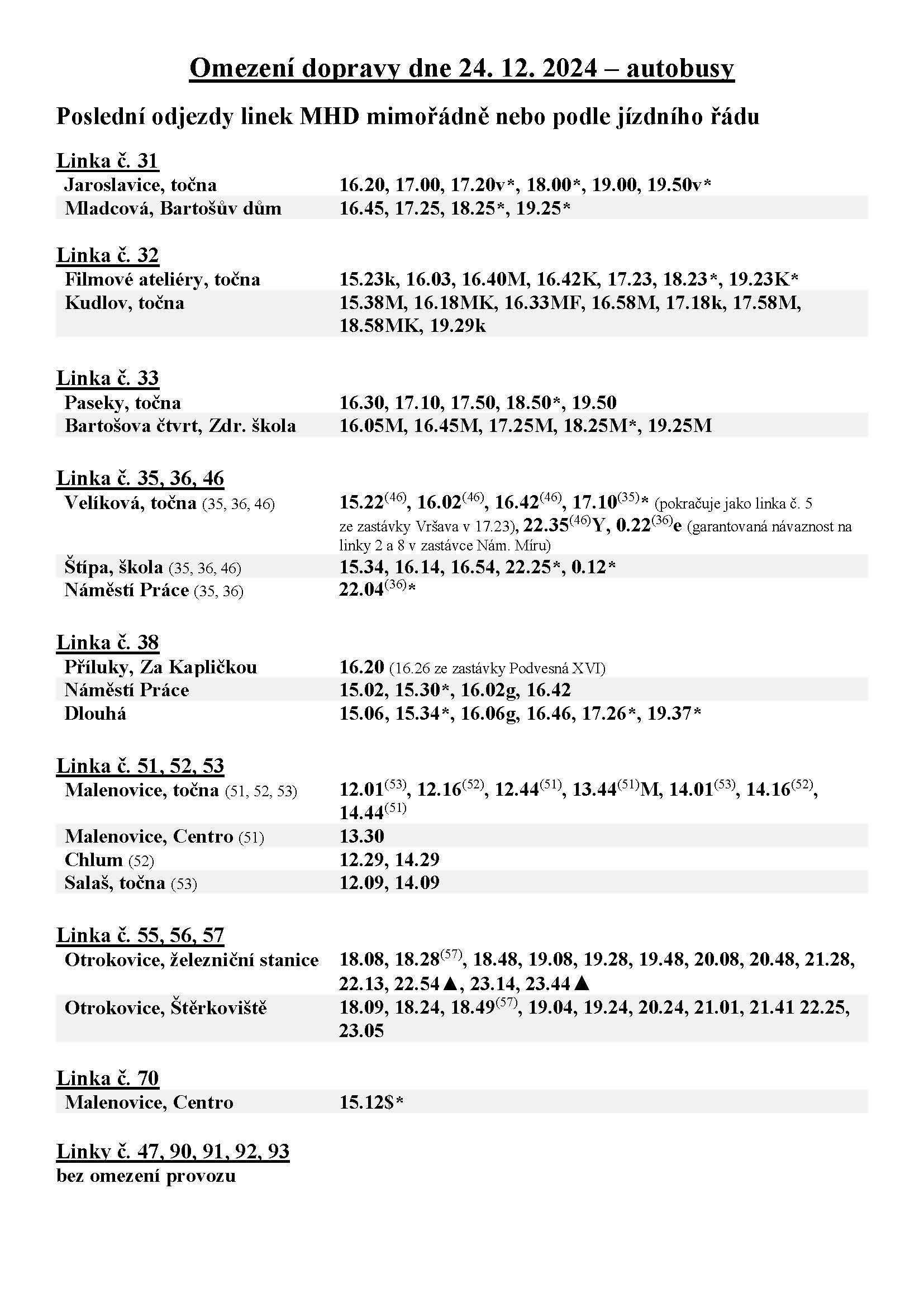 - 31. 12. 2024 – platí jízdní řády pro neděle s večerním omezením