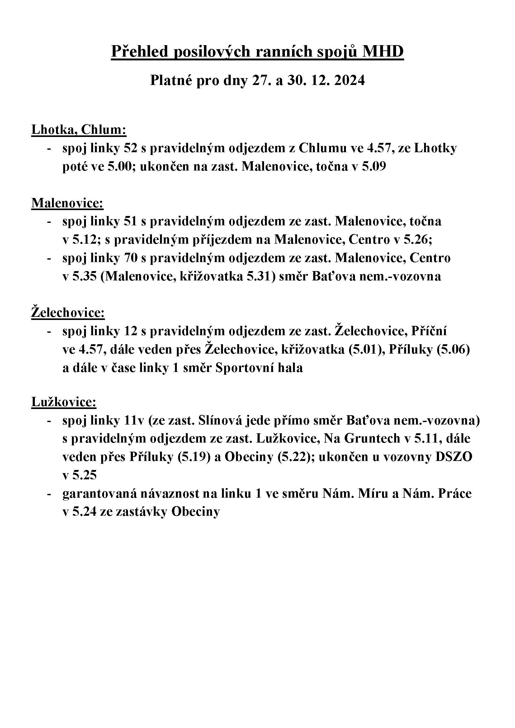 - 30. 12. 2024 – platí jízdní řády pro neděle s posilovými ranními spoji