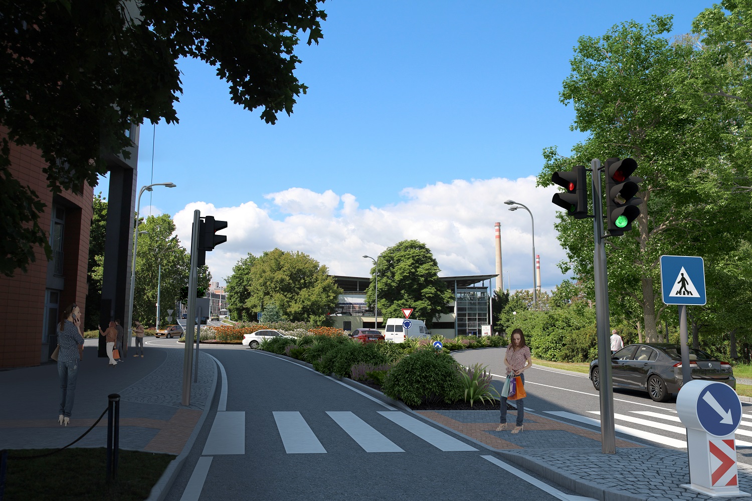 Místo kapacitně nevyhovující křižovatky se vybuduje nová okružní křižovatka se dvěma přídavnými pruhy, tzv. bypassy, oba budou mezi ulicí Trávník a Vodní. Okružní křižovatka zajistí dostatečnou kapacitu pro průjezd osobní i hromadné dopravy vč. kloubových vozů MHD. Stávající pěší trasy budou rekonstruovány a doplněny o střední dělící ostrůvky pro bezpečný pohyb chodců a cyklistů.