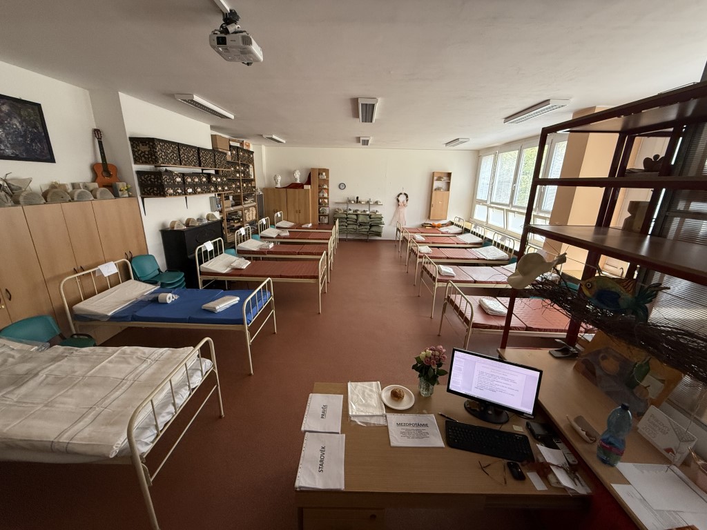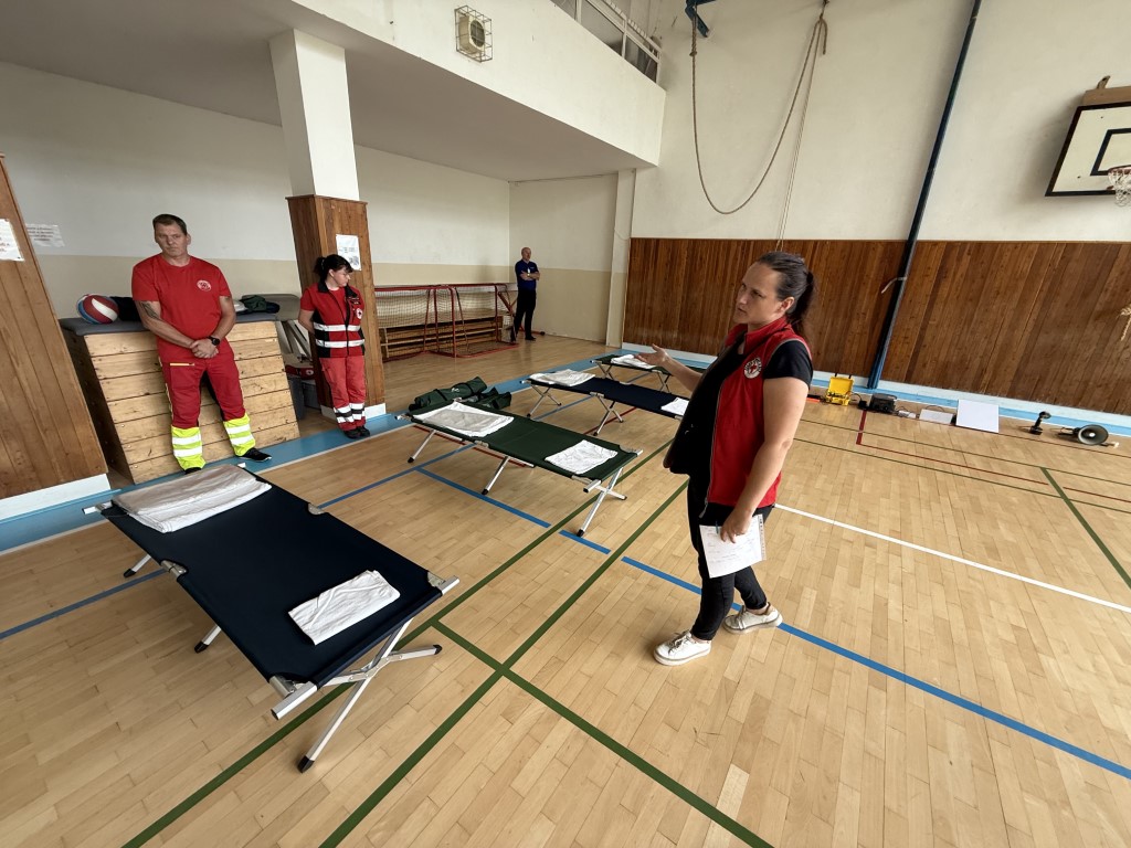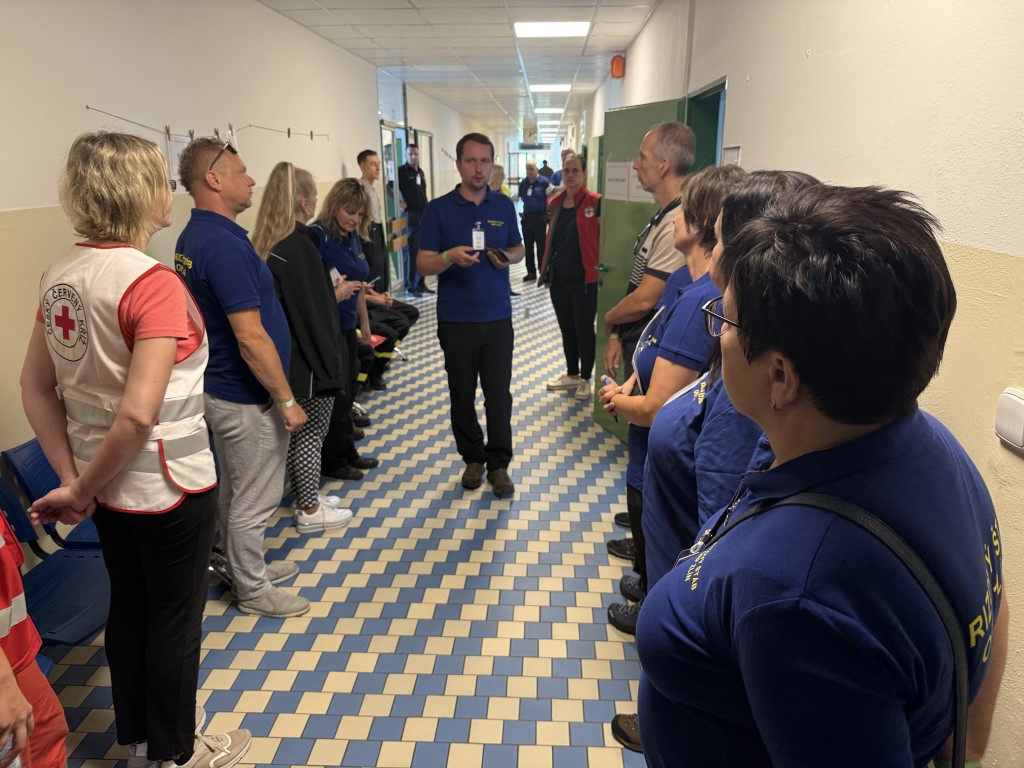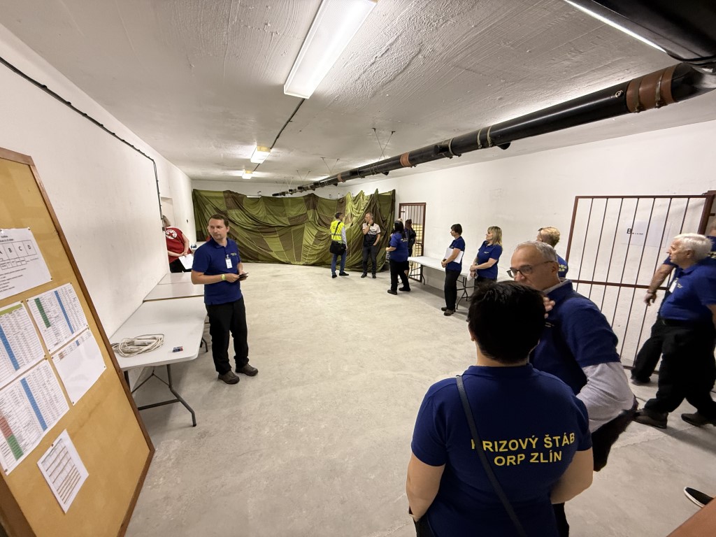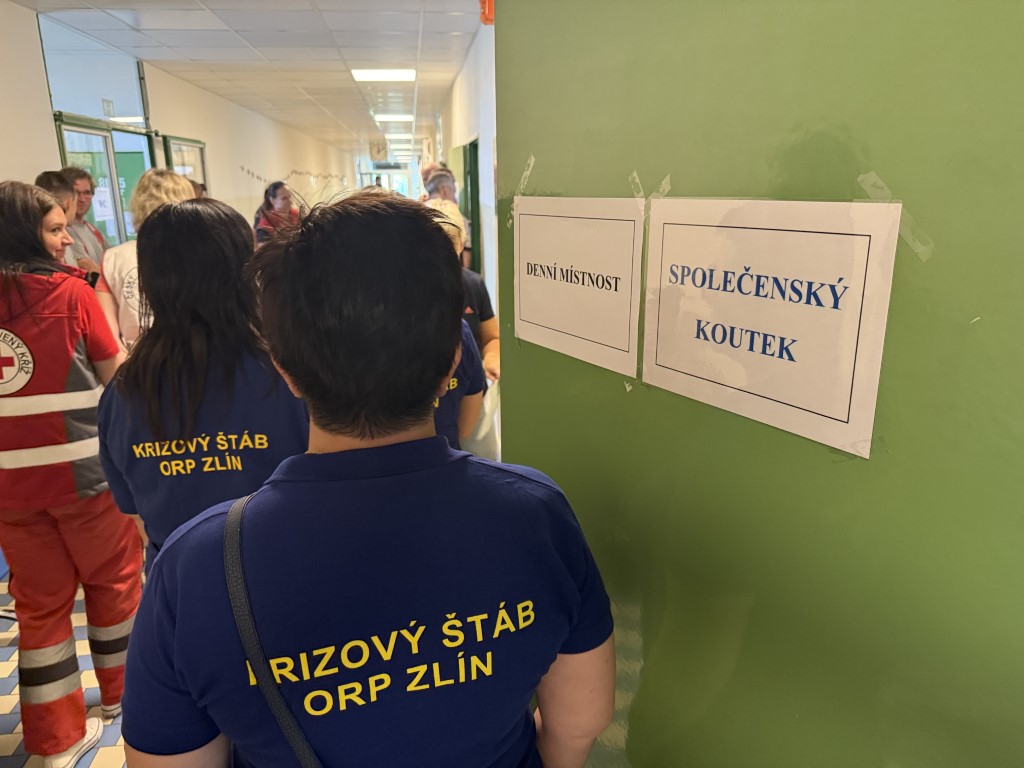Po skončení první části cvičení a průběžné kontroly plnění zadaných úkolů se cvičící přesunuli do ZŠ Zlín, Křiby 4788 na Jižních Svazích, kde se nachází jedno z předurčených míst vytipovaných pro zřízení evakuačního střediska ve Zlíně. Zázemí střediska disponuje materiálním vybavením až pro 325 evakuovaných včetně zásob trvanlivé stravy.