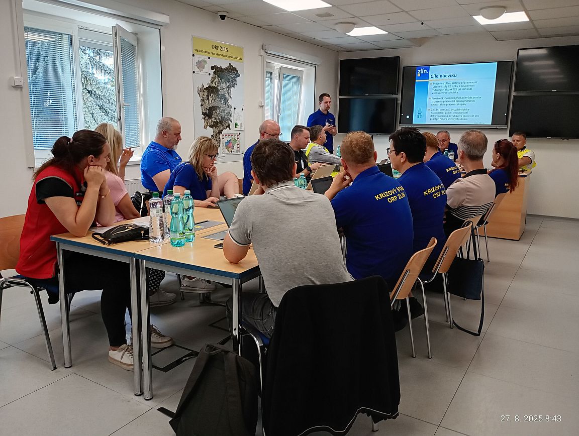 Úvodní setkání proběhlo v budově Městské policie Zlín a bylo následně doplněno praktickým nácvikem činností souvisejících s řešením krizové situace a rozvinutím evakuačního střediska. Cílem cvičení bylo prověřit připravenost krizového štábu a schopnost koordinace jednotlivých zapojených složek integrovaného záchranného systému, mezi které patřil Hasičský záchranný sbor Zlínského kraje, Oblastní spolek Zlín Českého červeného kříže a jednotky sboru dobrovolných hasičů města Zlína a místní části Jaroslavice.