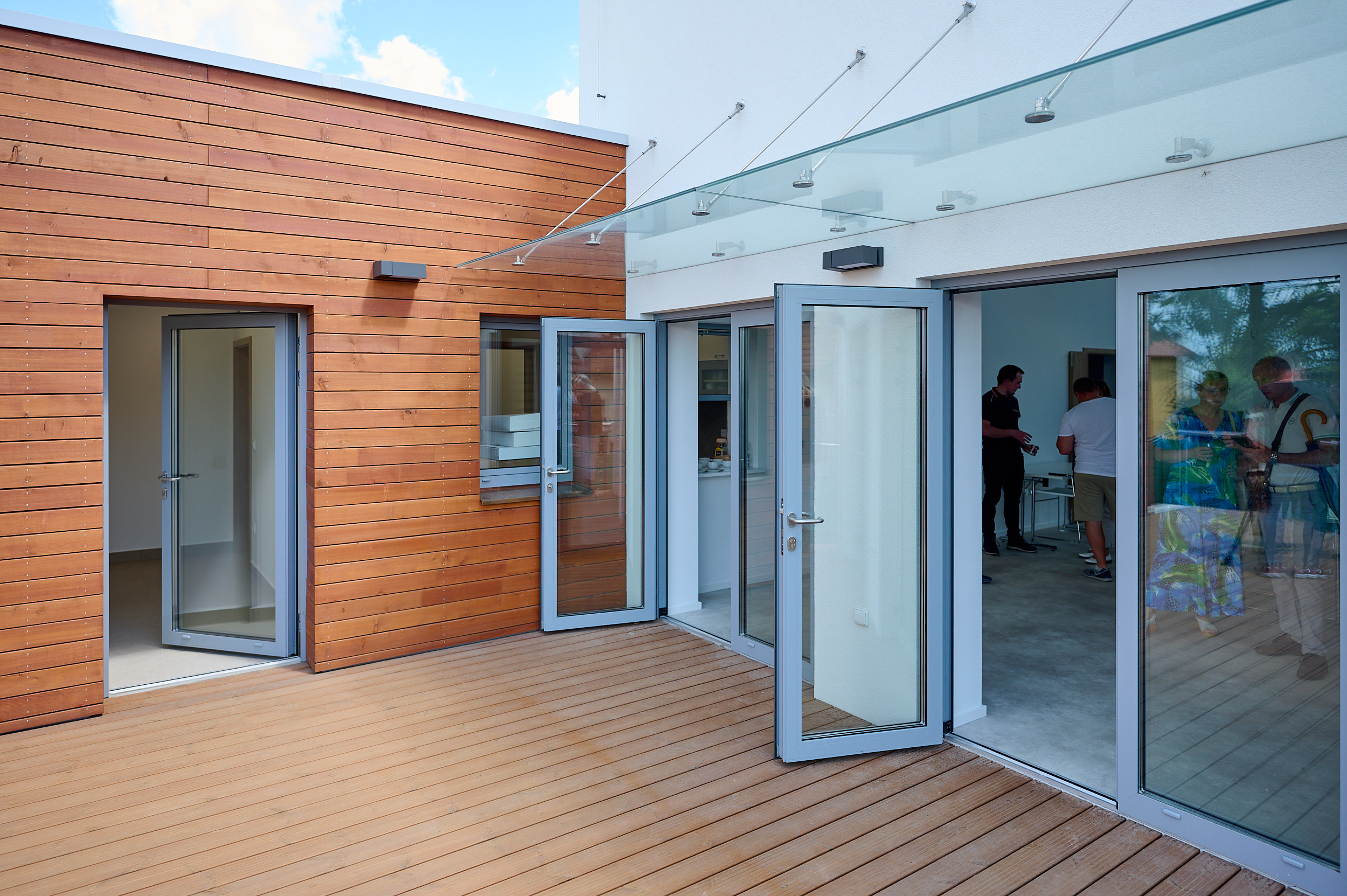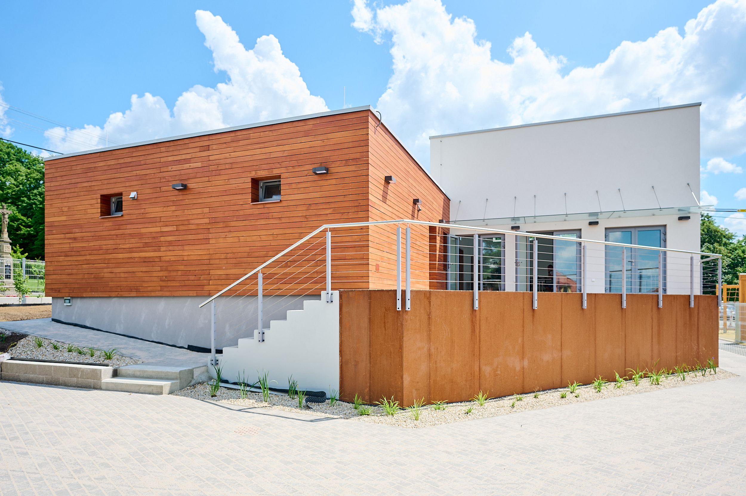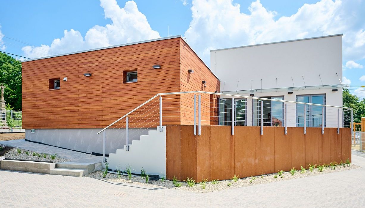 Dominantou objektu je venkovní terasa o velikosti 40 m2, která posouží i k posezení. Na zahradě se kromě vybetonované plochy, která do budoucna může sloužit jako místo pro podium, nachází i dětské hřiště s lité pryže, s vybudovaným herním „workoutovým“ prvkem a velká dětská houpačka. Pozornost věnovalo město i zeleni.
