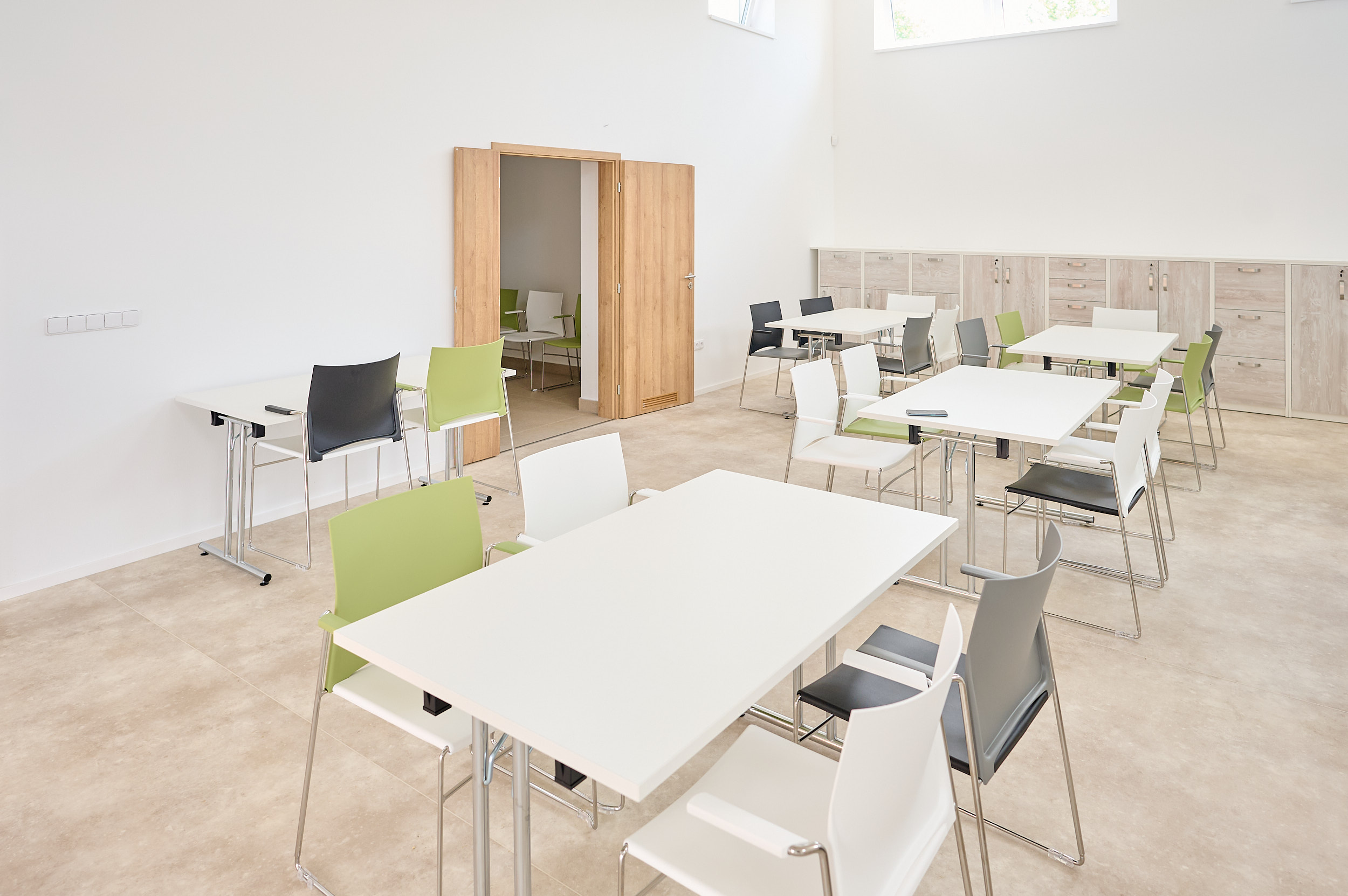 V přízemí multifunkčního objektu se nachází klubovna, kancelář místní části, hygienické a technické zázemí a multifunkční sál s kapacitou minimálně 50 sedících osob. Velikost sálu je 76,6 m2. Strop dosahuje výšky 4,2m, což umožní, aby se ve vnitřních prostorách hrál například i stolní tenis. Sál je propojen výdejním oknem s kuchyňkou