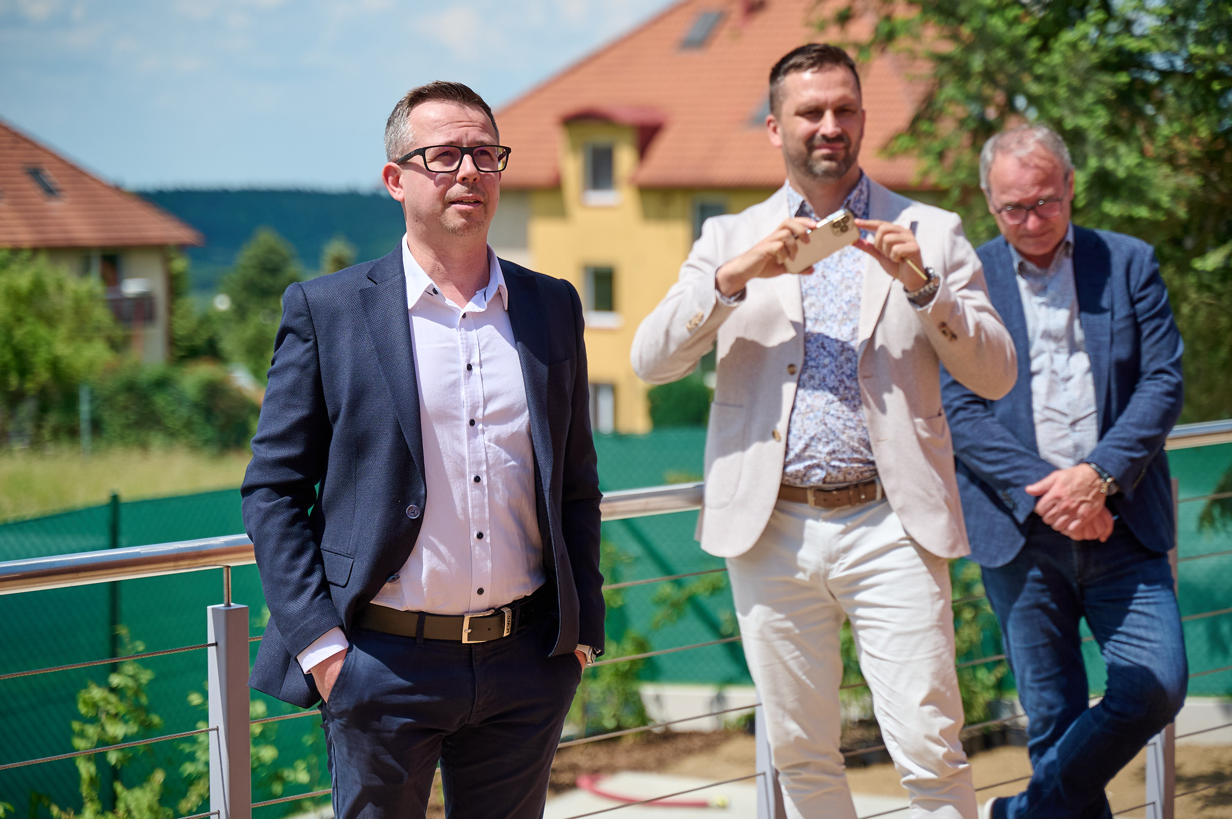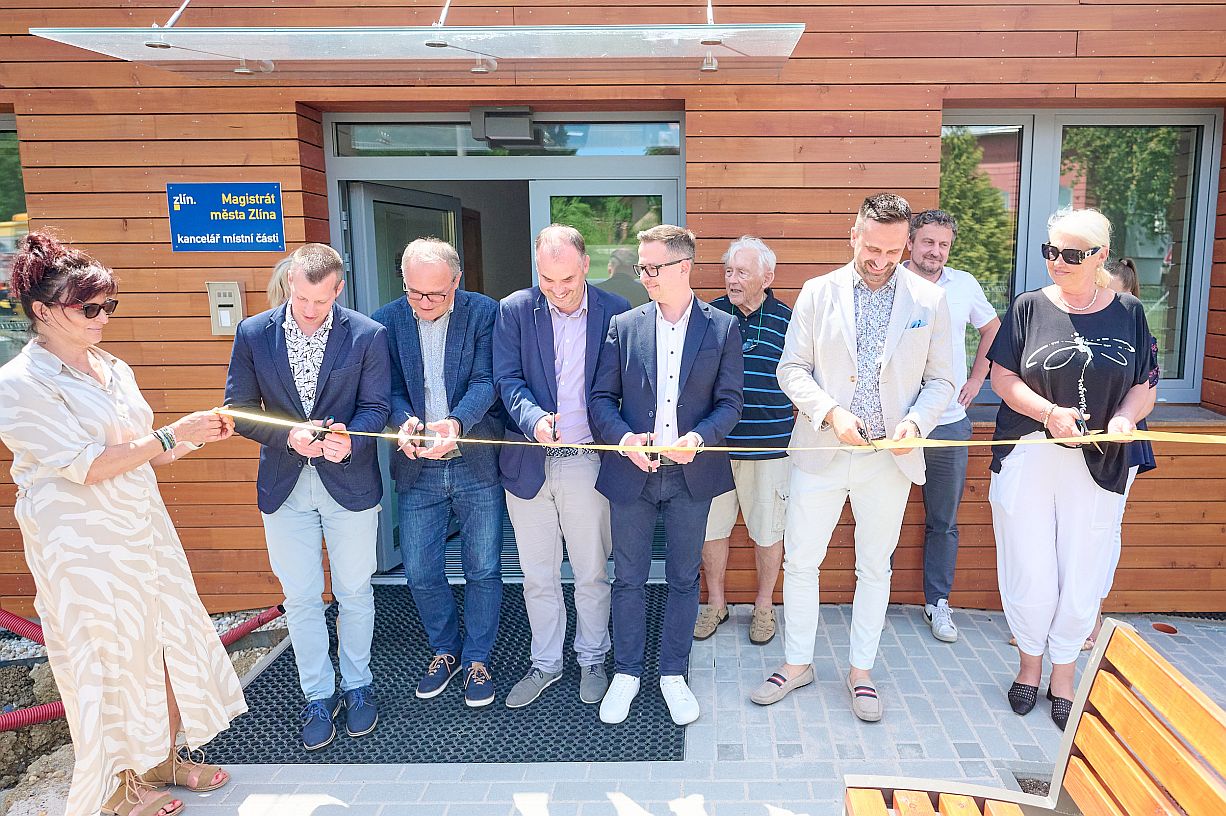 Slavnostní přestřižení pásky a předání multifunkčního objektu na Kudlově do užívání se uskutečnilo za účasti vedení zlínské radnice 27. května 2024.