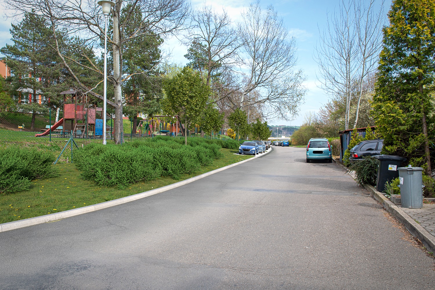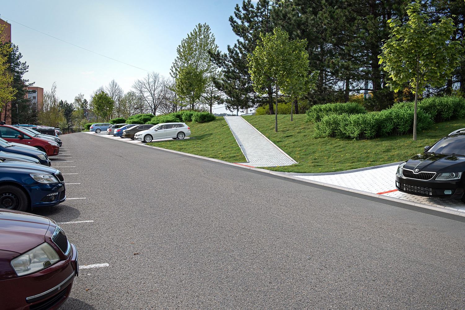 Nájezd na parkoviště bude vybudován ze silnice III. třídy z ulice Okružní. Pro umožnění bezpečného přecházení chodců přes tuto silnici se buduje nový přechod pro chodce včetně ochranného dopravního ostrůvku a jeho přisvětlení. V návaznosti na přechod pro chodce se doplňují dva úseky přístupových chodníků, které vedou ze sídliště na ulici Okružní na dočasné parkoviště. Součástí stavby bude i výsadba zeleně a osvětlení.