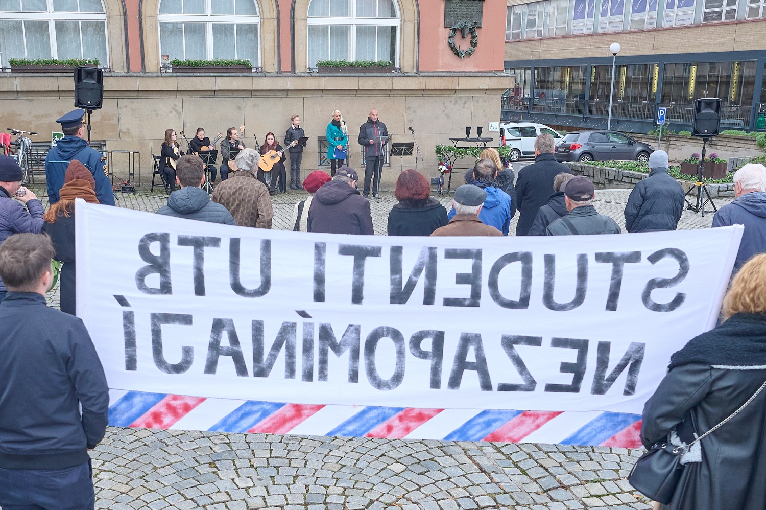 Zlín - Slavnostní pietní shromáždění ke 34. výročí Dne boje za svobodu a demokracii, se konalo v pátek 17. listopadu 2023 v 10 hodin u Pomníku obětem totality, nám. Míru 12. V rámci něj pronesli proslovy primátor města Zlína Jiří Korec, náměstkyně hejtmana Zlínského kraje Hana Ančincová a prorektor UTB Marek Kubalčík.