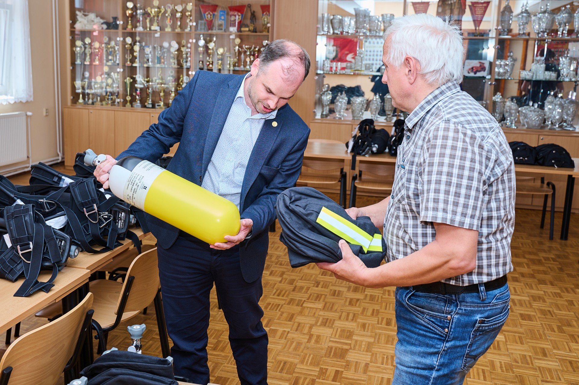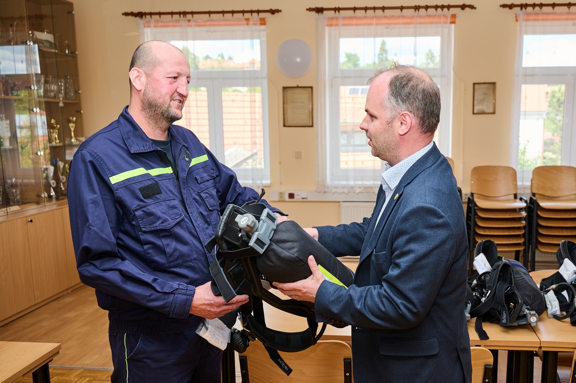 Celkem bylo velitelům předáno 12 kusů dýchacích přístrojů PPS 400 a 6 kusů náhradních kompozitních láhví. Předání proběhlo v hasičské zbrojnici ve Zlíně - Prštném, kde si velitelé tuto dýchací techniku hned vyzkoušeli.