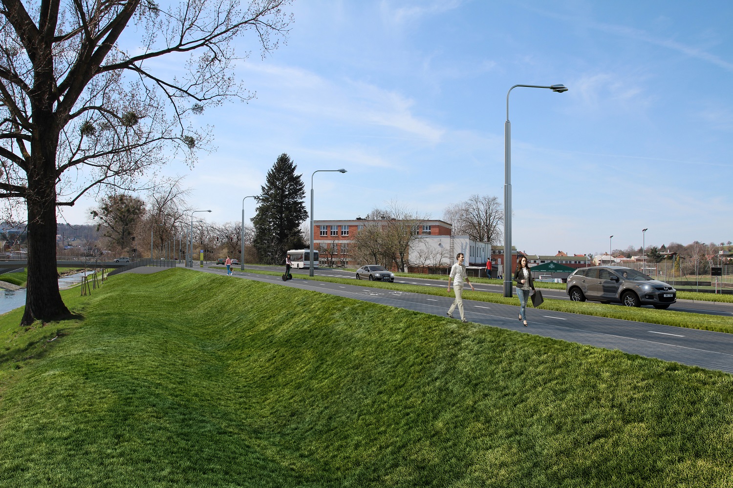 Komunikace bude primárně vedena po stávajícím nábřeží. Součástí návrhu bude návrh vedení komunikace pro pěší a návrh vedení komunikace pro cyklisty. Návrh bude zohledňovat předpokládané trasy pěších a cyklistů, které již definuje Generel dopravy města Zlína. Předpokládaná hodnota veřejné zakázky byla stanovena ve výši 3 miliony Kč bez DPH za obě etapy.