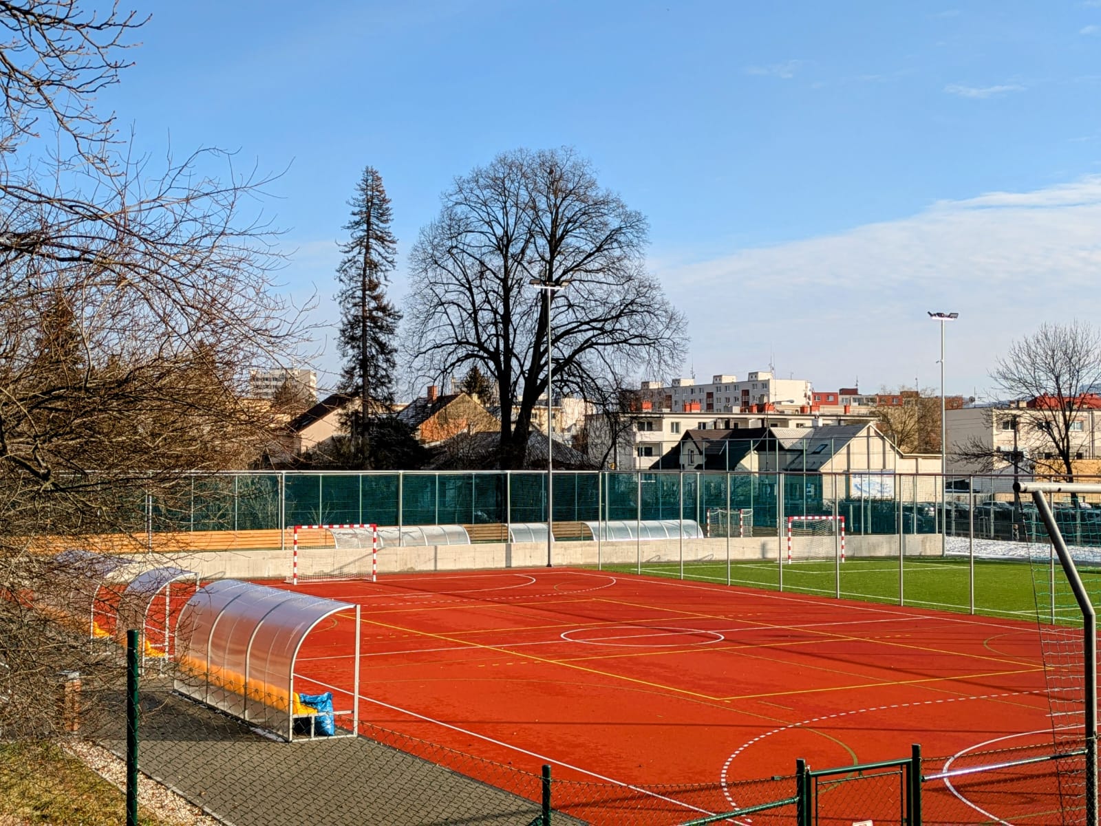 Areál je vybaven výkonným umělým osvětlením pro večerní sportování. Sportoviště nasvítí z výšky dvanácti metrů třináct LED světlometů o výkonu 600 Wattů. Návštěvníci dostanou k dispozici moderní zázemí se šatnami, sprchami a sociálním zařízením, které zajišťuje maximální komfort.