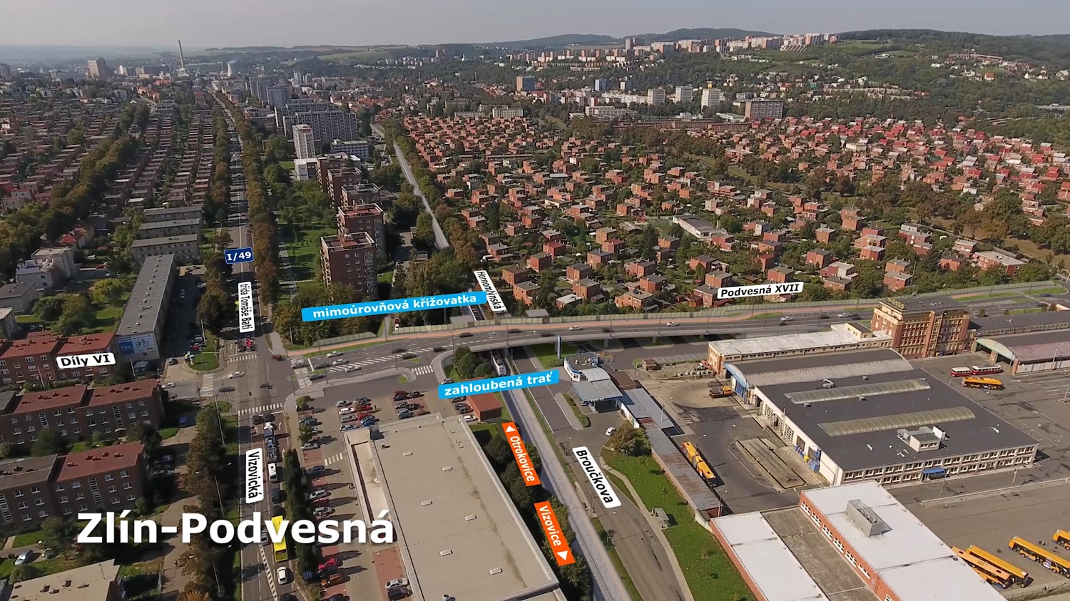Dopravní přestavby se dotknou také části Podvesné. Zde má vzniknout nové mimoúrovňové křížení železnice se silnicí. Na tento silniční úsek pak přímo naváže městská stavba obchvatu Zálešné, na který pak přímo navazuje krajská stavba dálničního přivaděče. Poslední důležitou tepnou je výstavba dálnice D49, která je pod taktovkou ŘSD. Po letitých průtazích by měla mít stavba D49 stavební povolení v roce 2020.